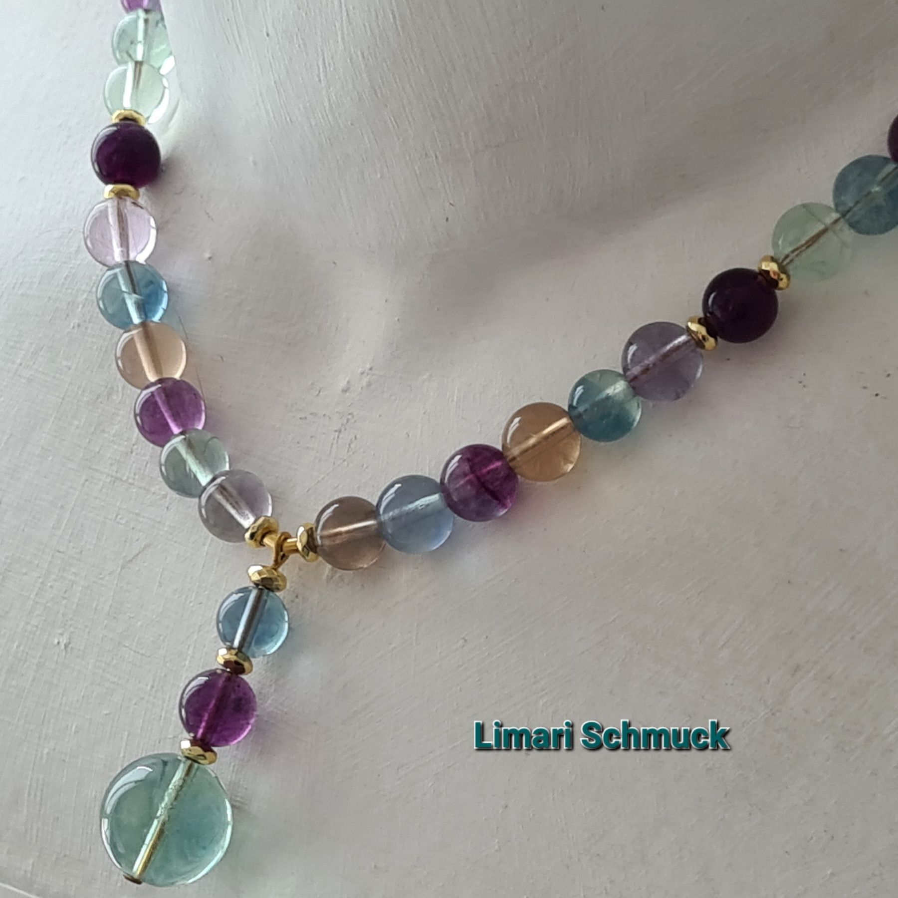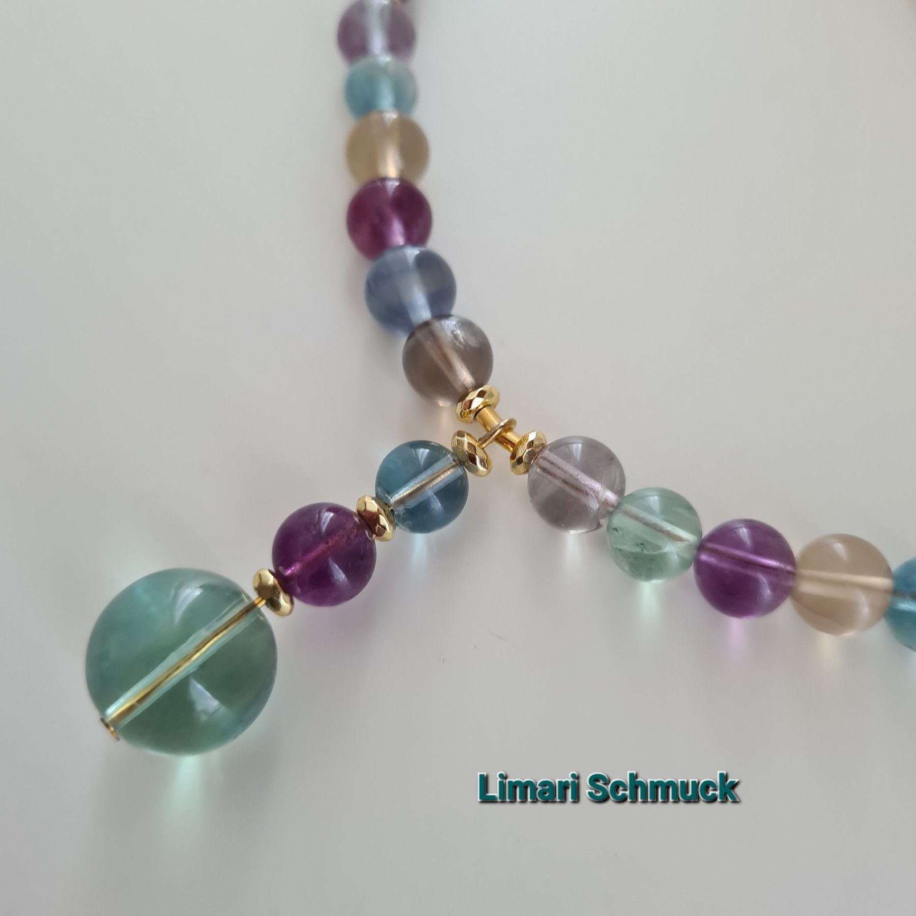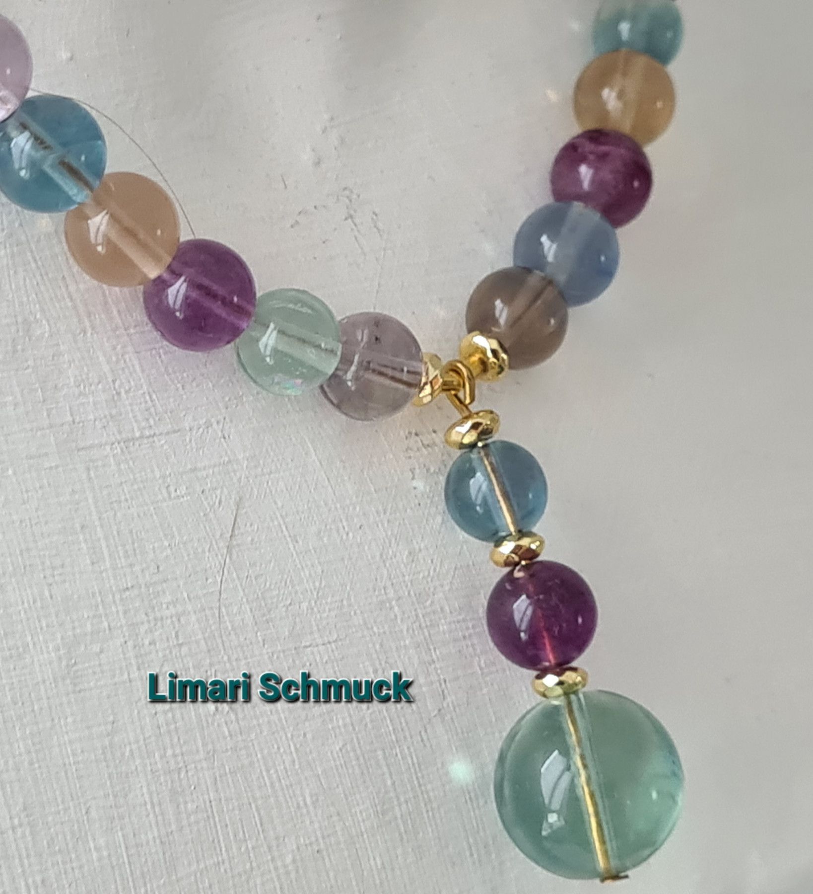 Limari Schmuck Fluorit Kette Collier AAAA 46 cm Multicolor Gold 585 UNIKAT