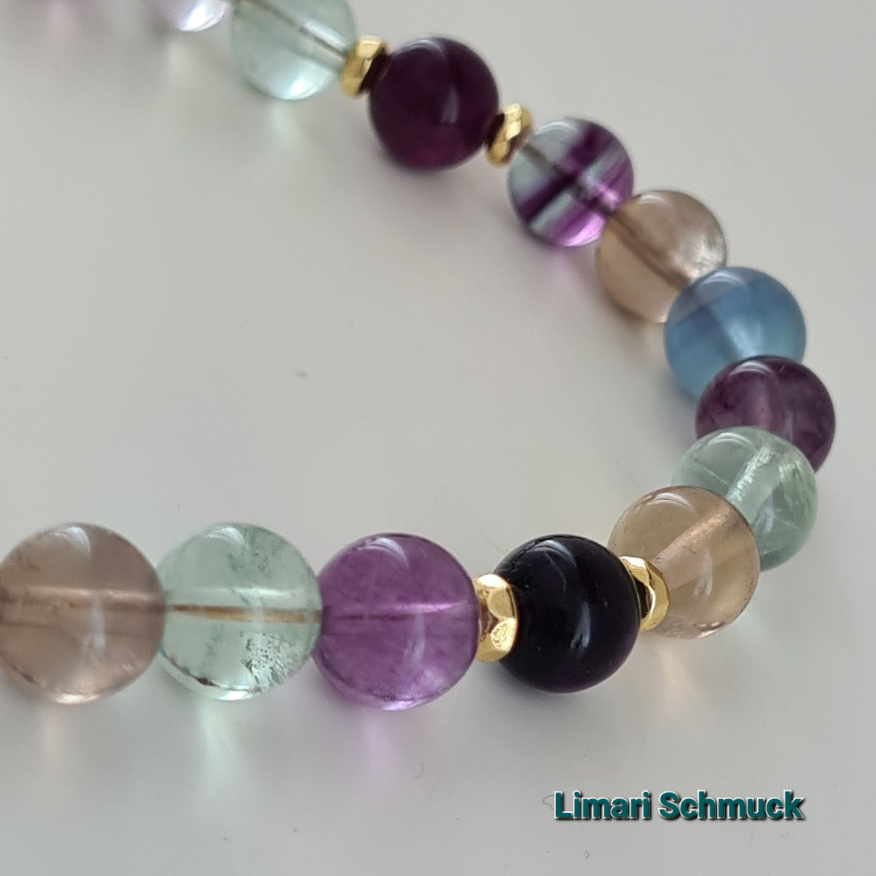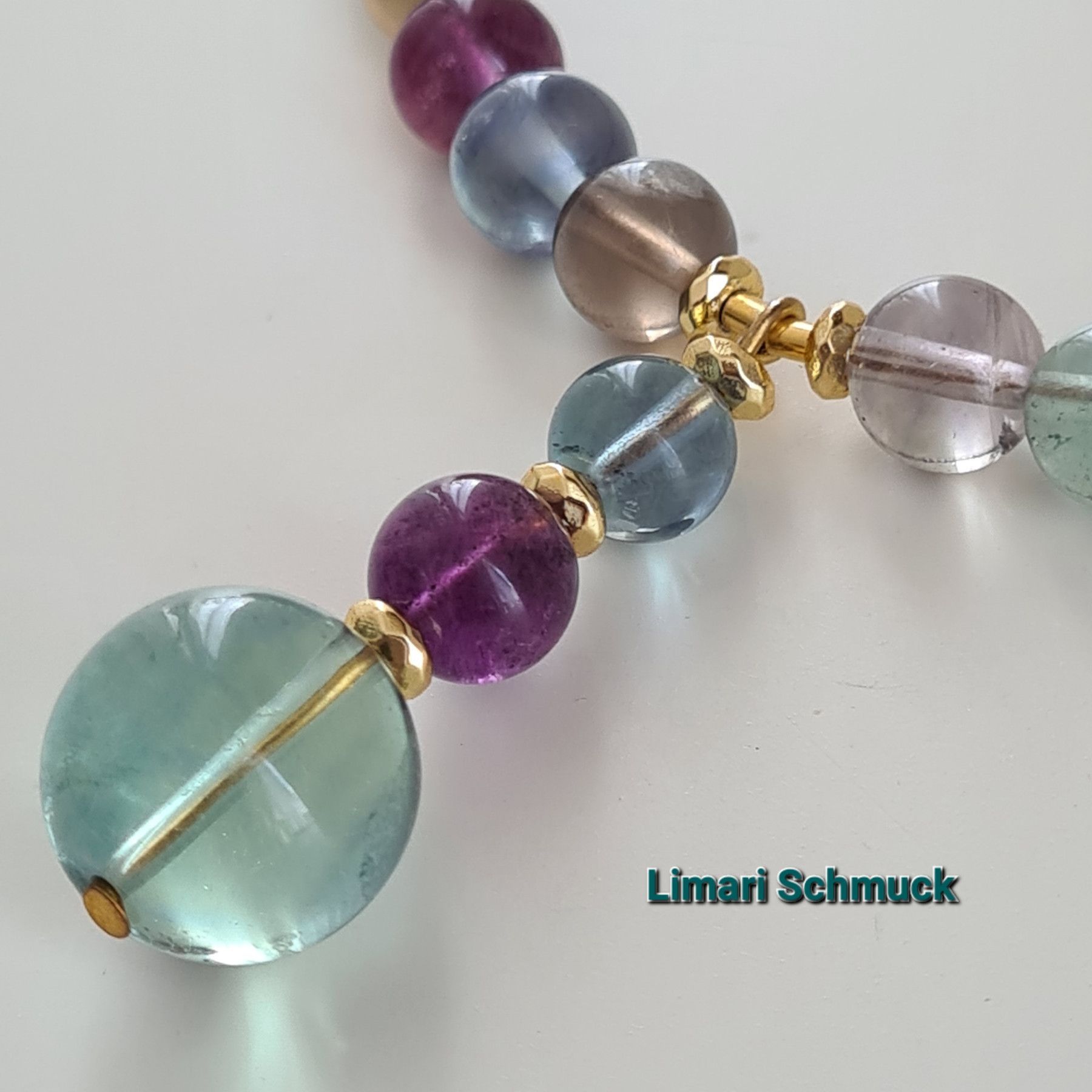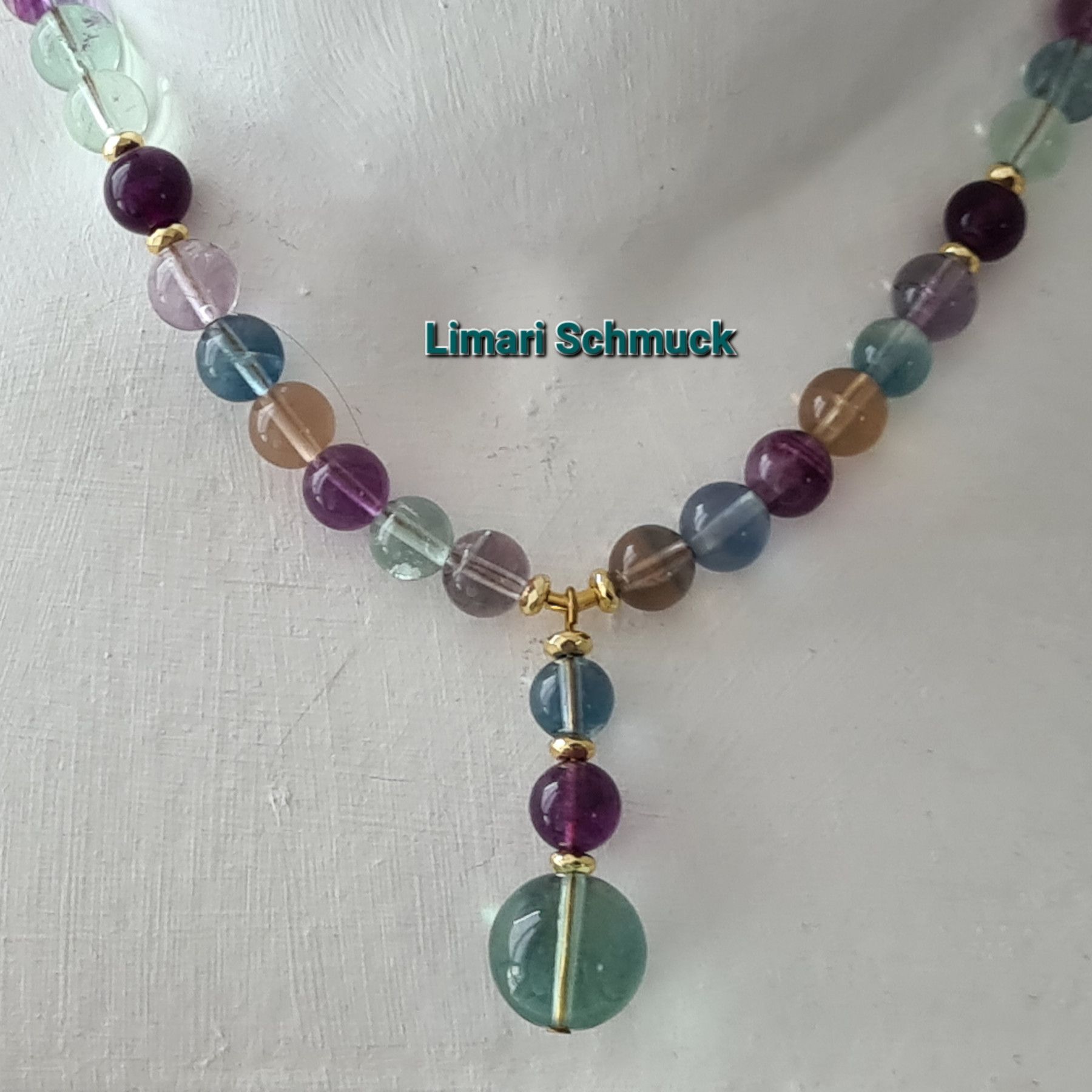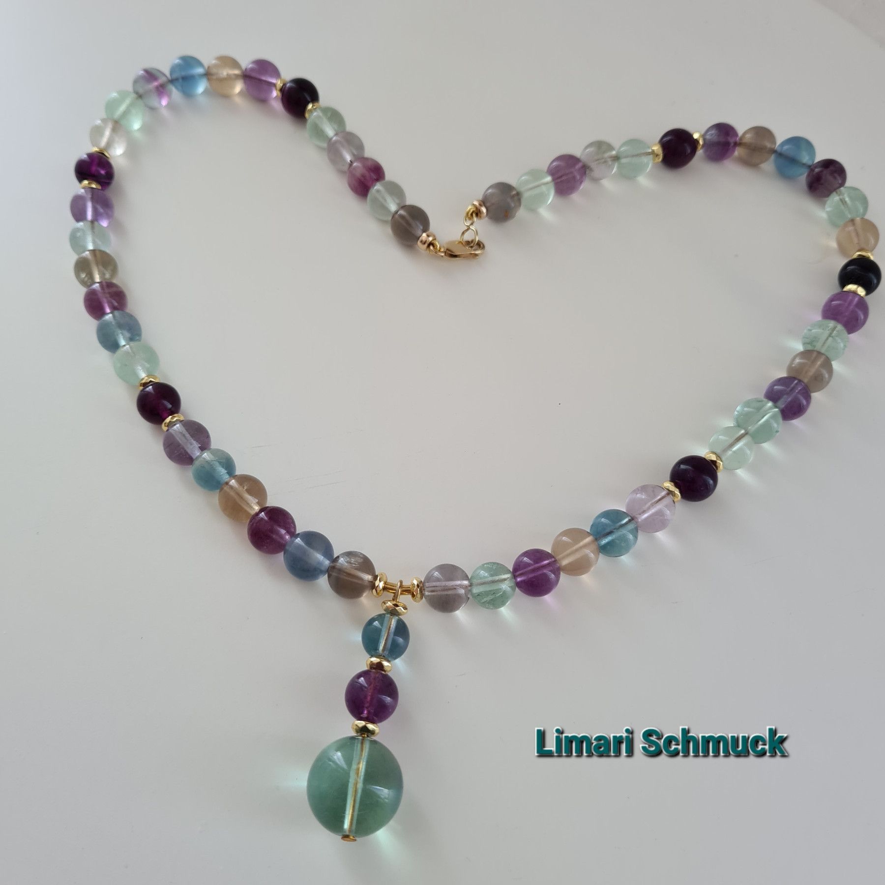 Limari Schmuck Fluorit Kette Collier AAAA 46 cm Multicolor Gold 585 UNIKAT