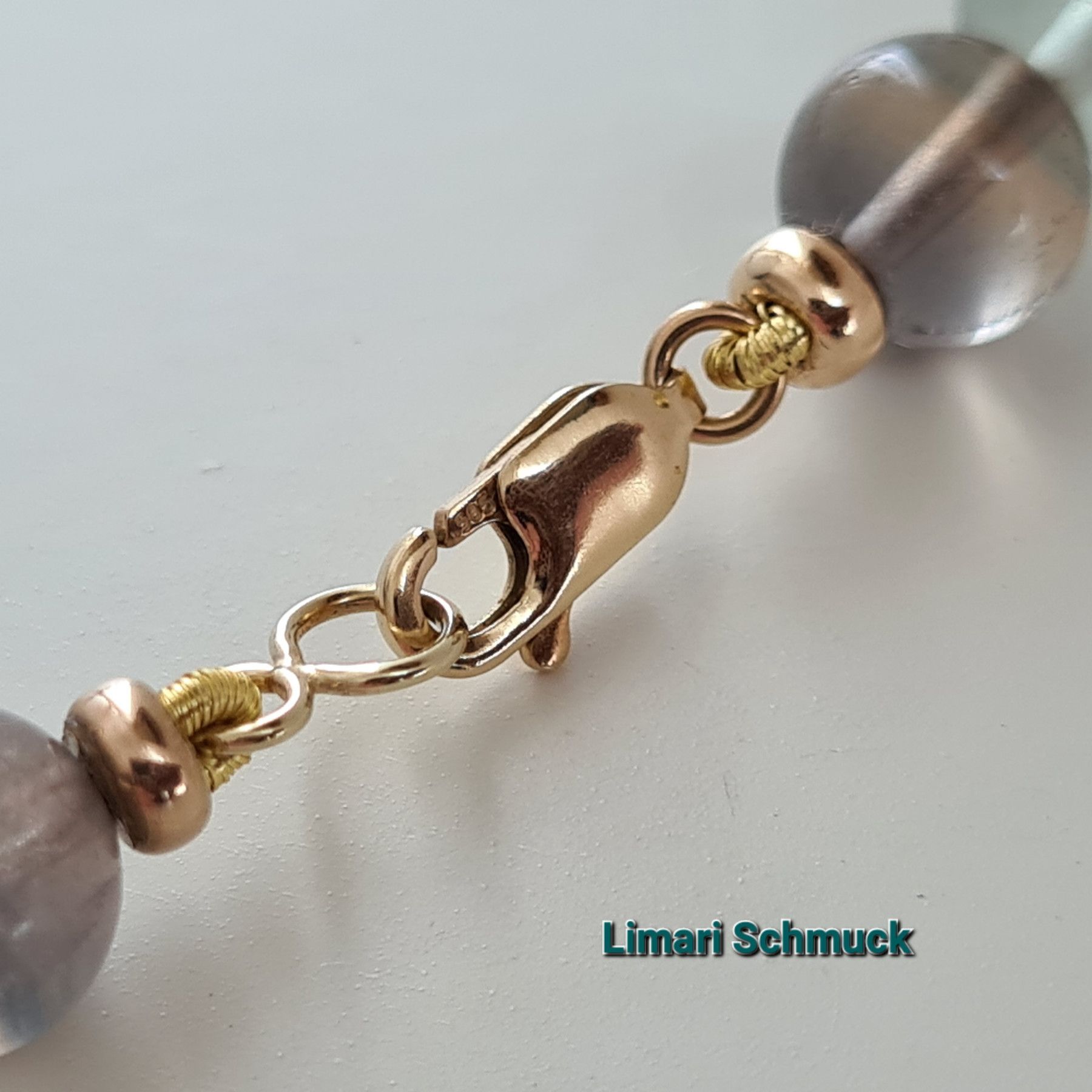 Limari Schmuck Fluorit Kette Collier AAAA 46 cm Karabinerverschluss Gold 585