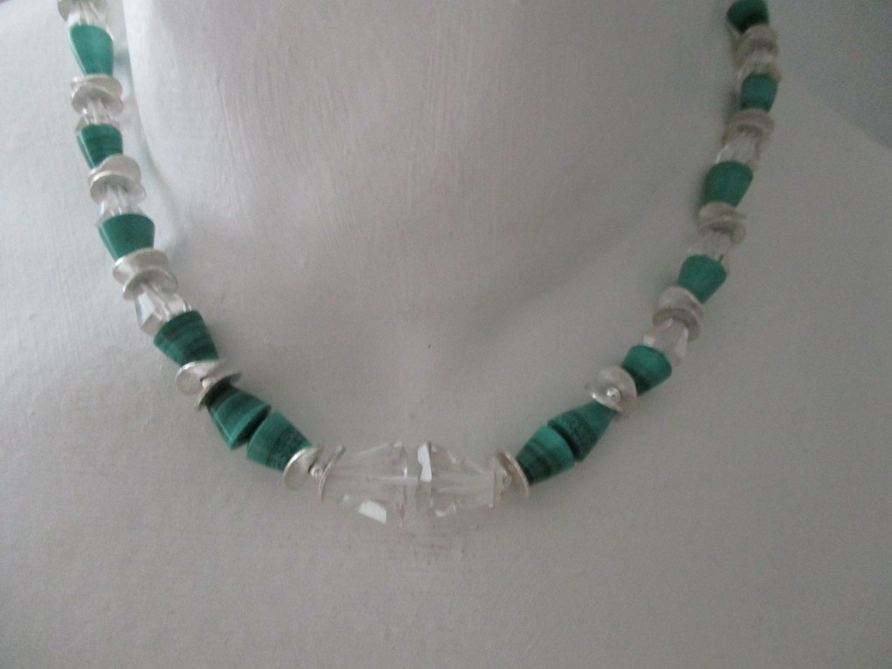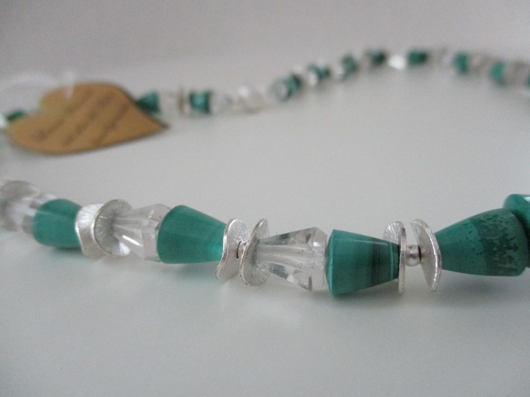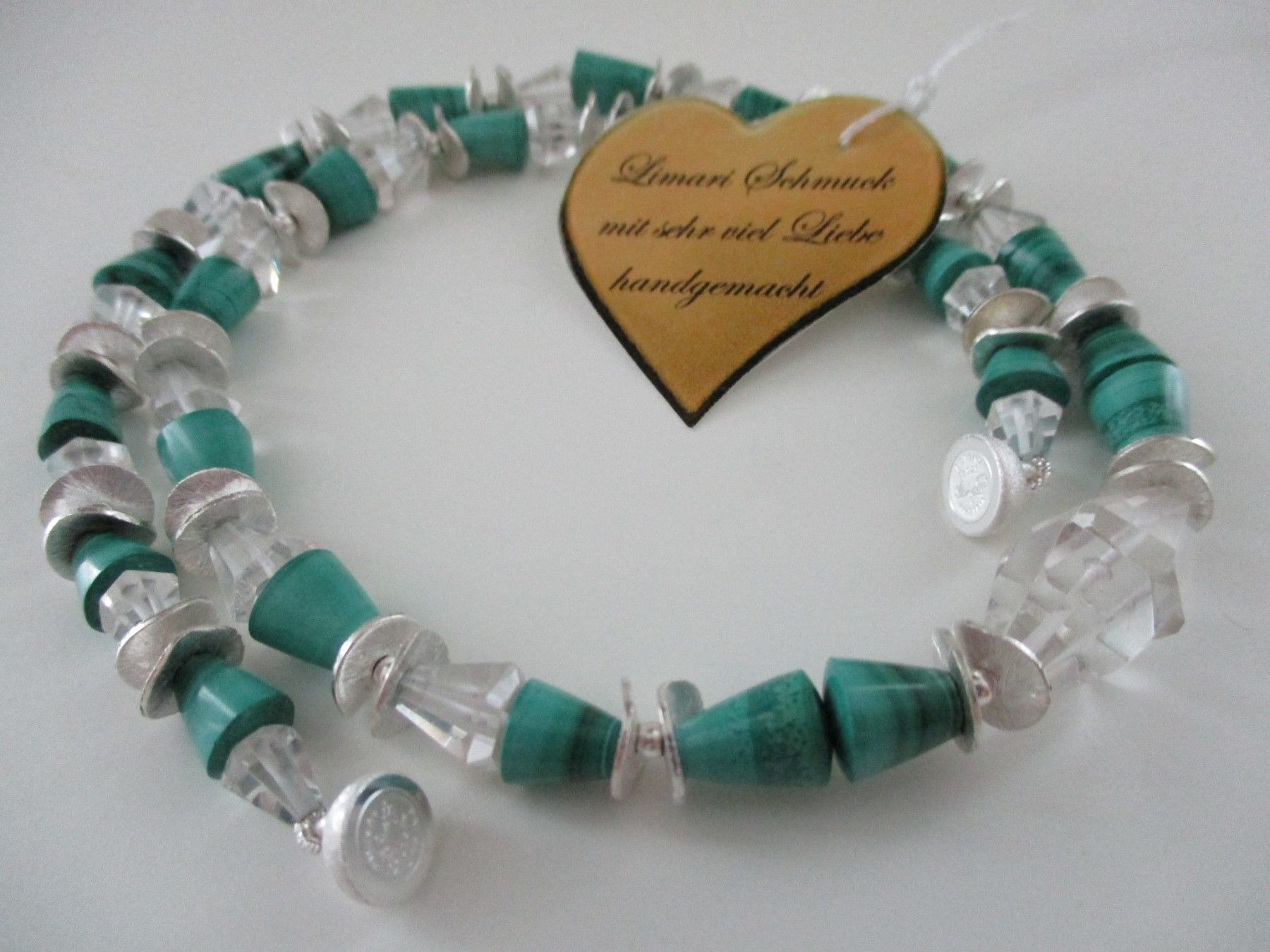Limari Schmuck Malachit Bergkristall Kette Edelsteinkette Silber 925 UNIKAT
