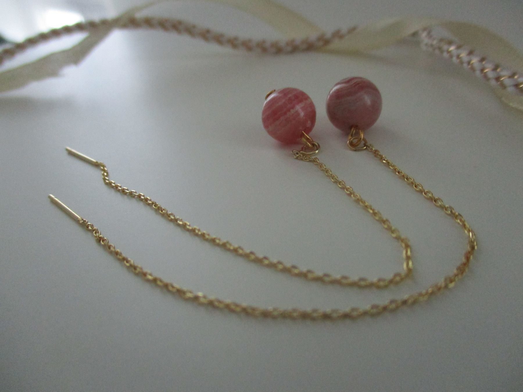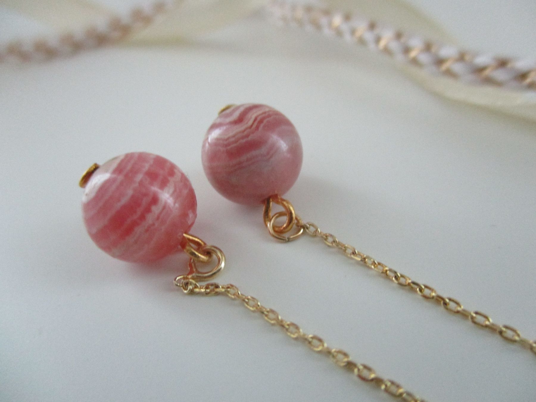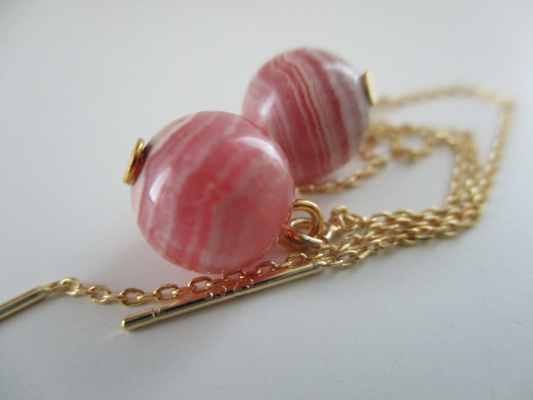Limari Schmuck Rhodochrosit Ohrringe Durchzieher Ohrhänger Silber 925 vergoldet