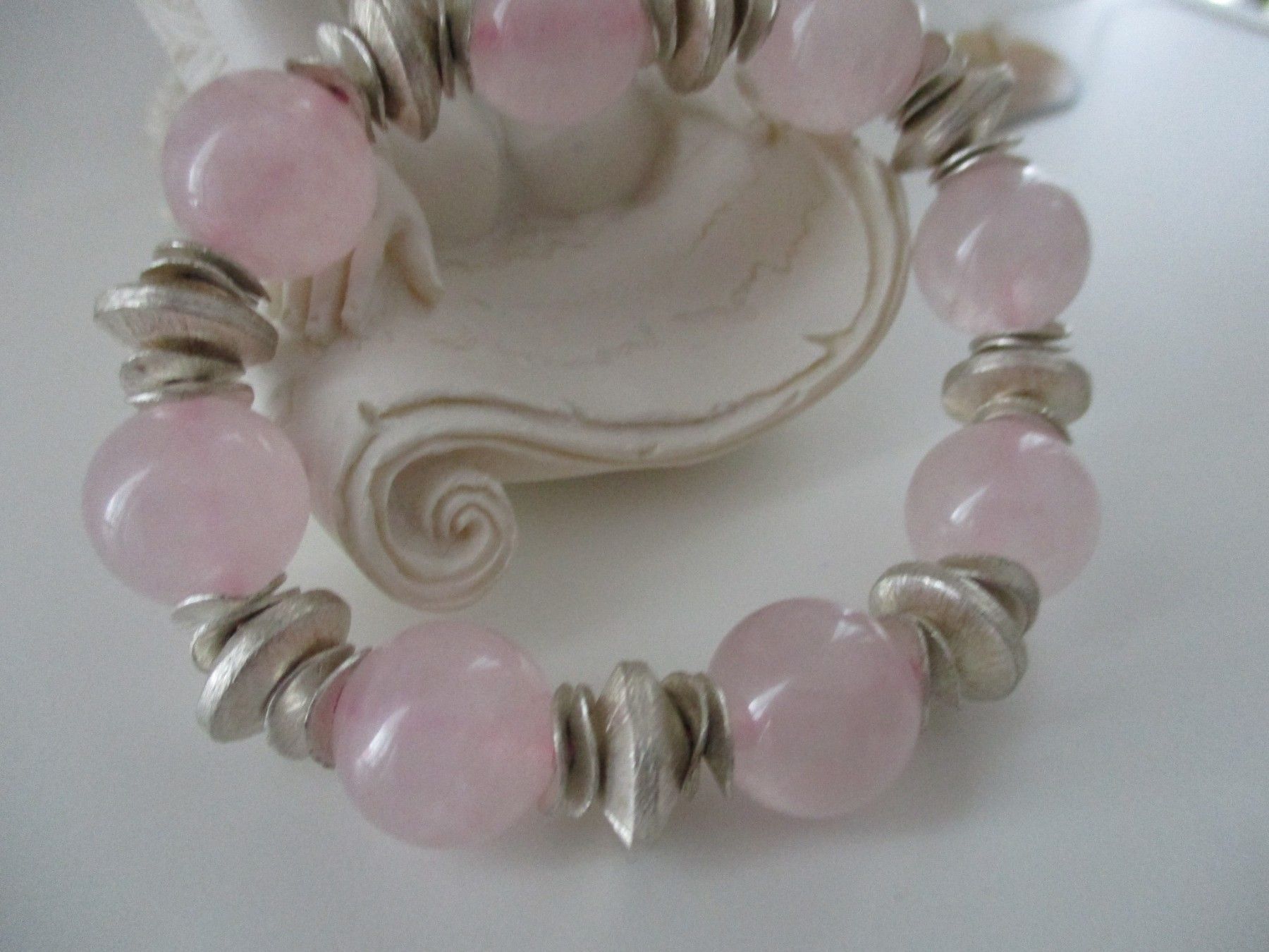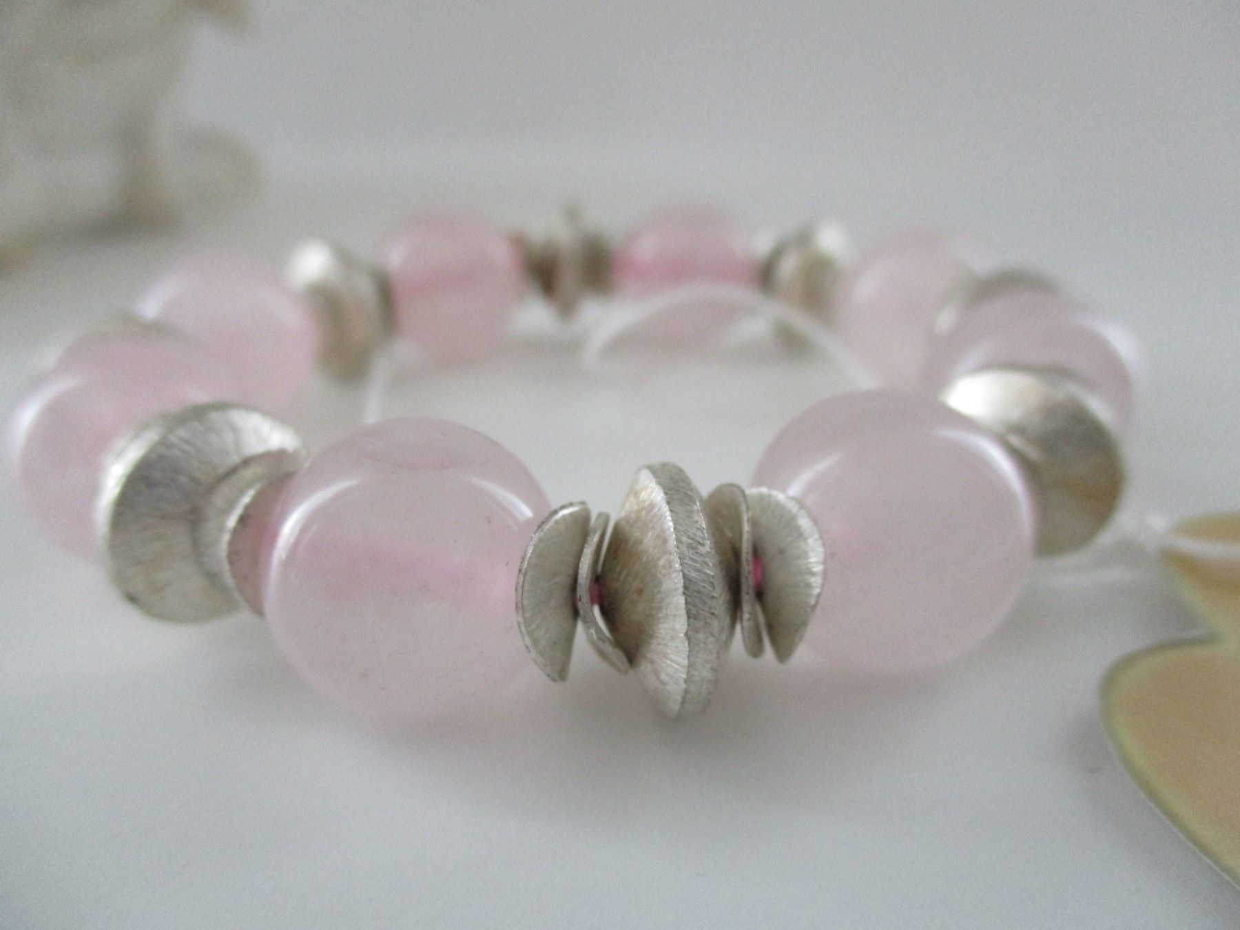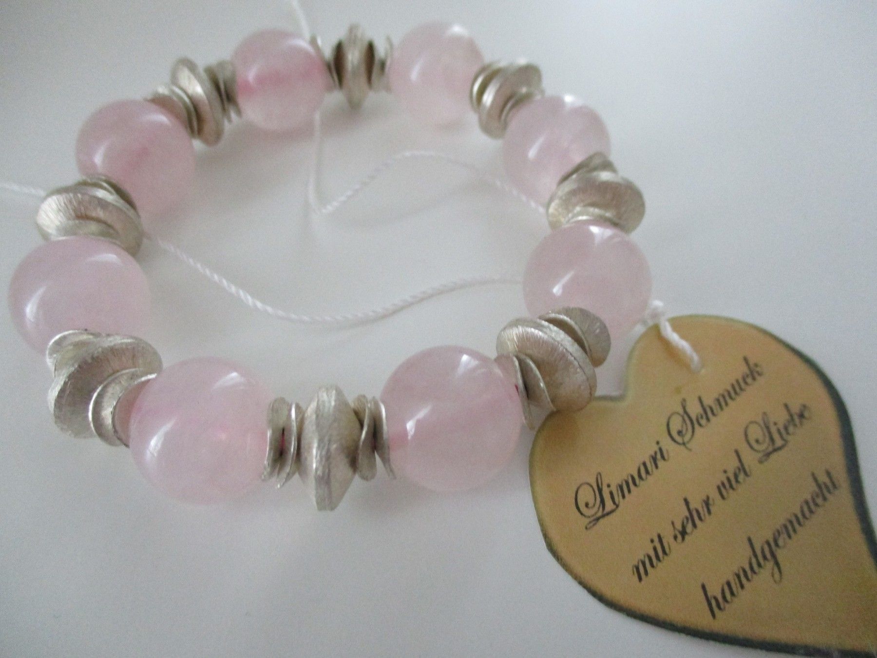 Limari Schmuck Rosenquarz Armband Edelsteinarmband Farbe Rosa / Silber UNIKAT