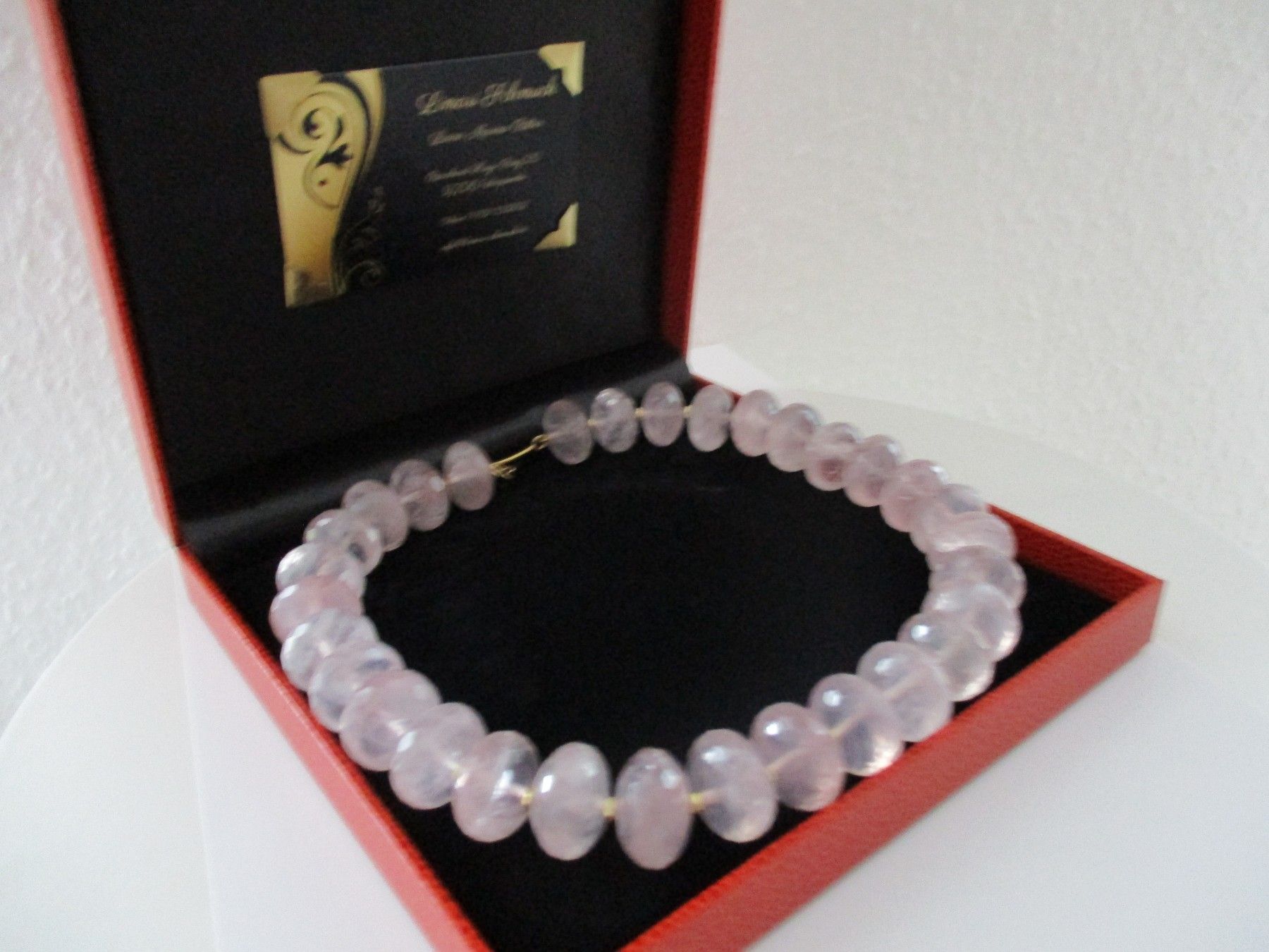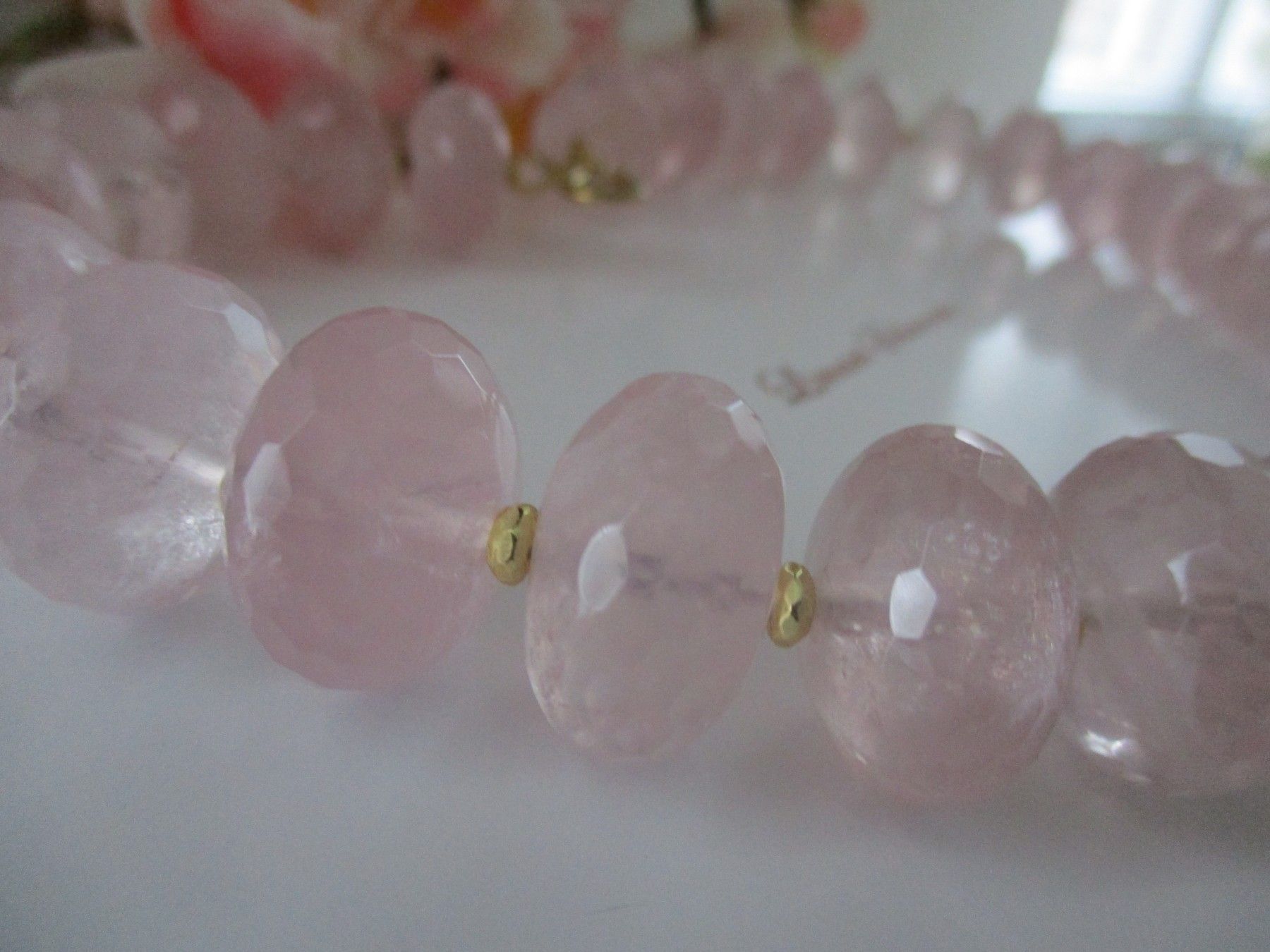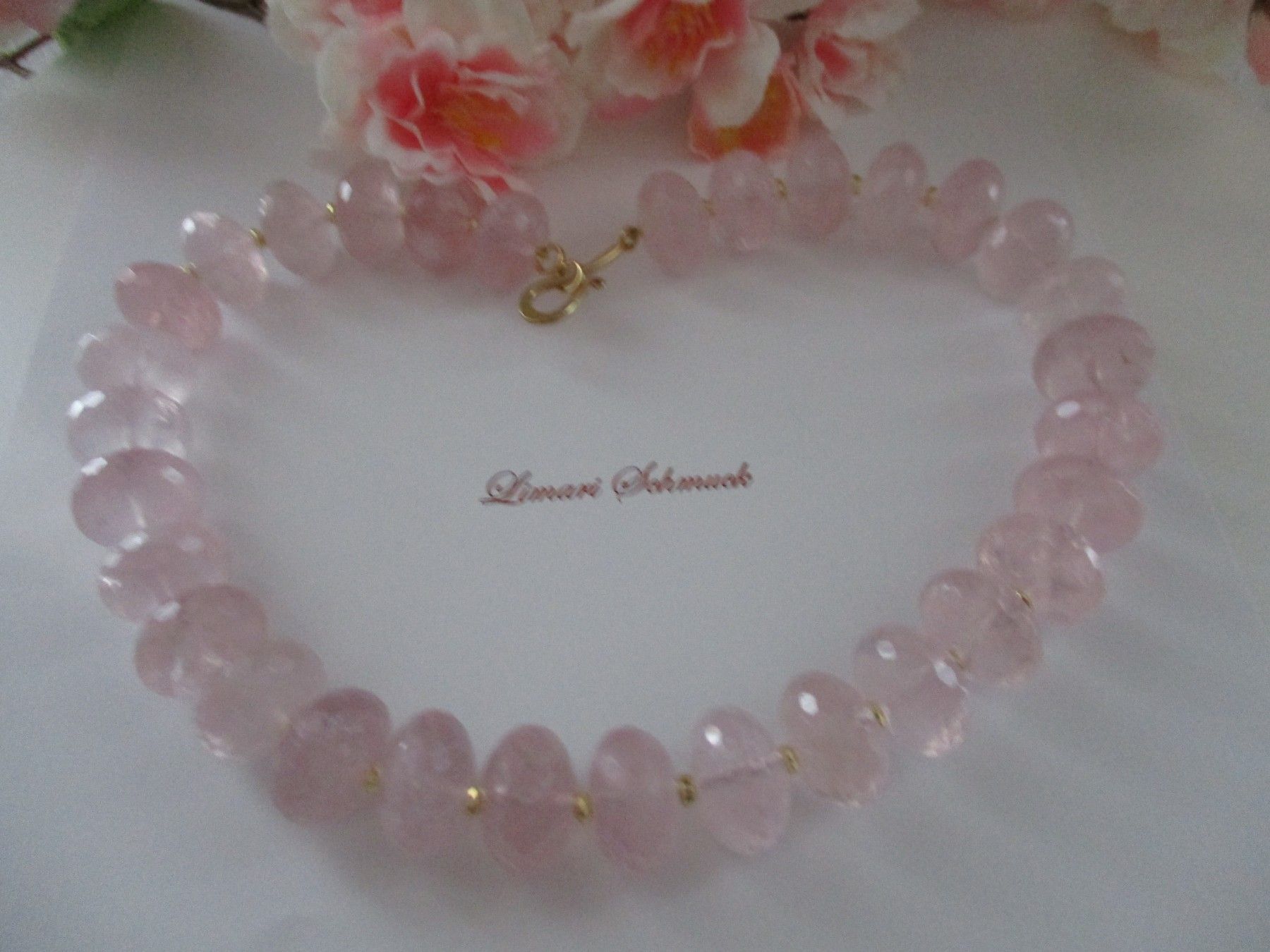 Limari Schmuck Rosenquarz Kette 49 cm Gold / Silber 925 Edelsteinkette UNIKAT