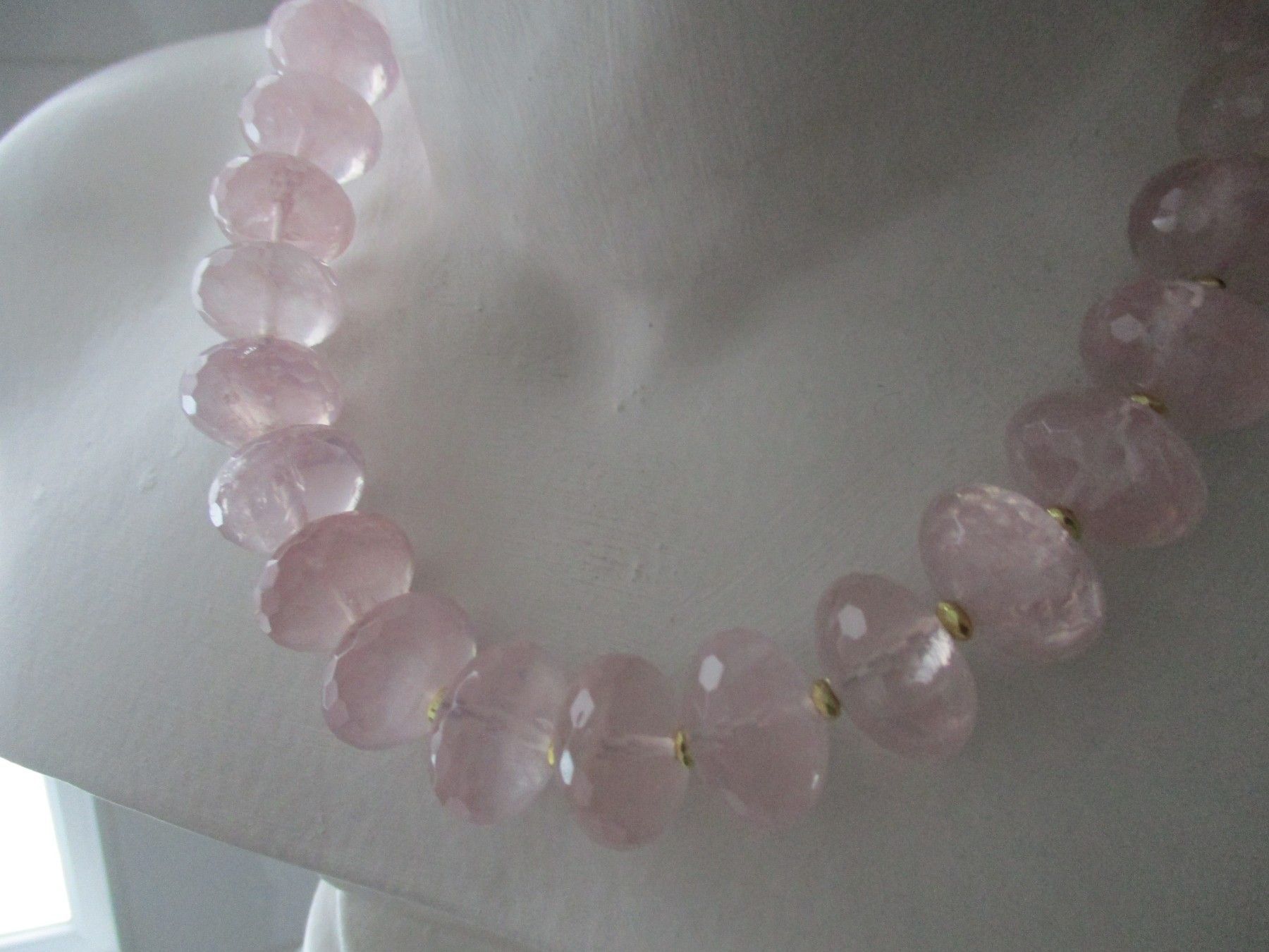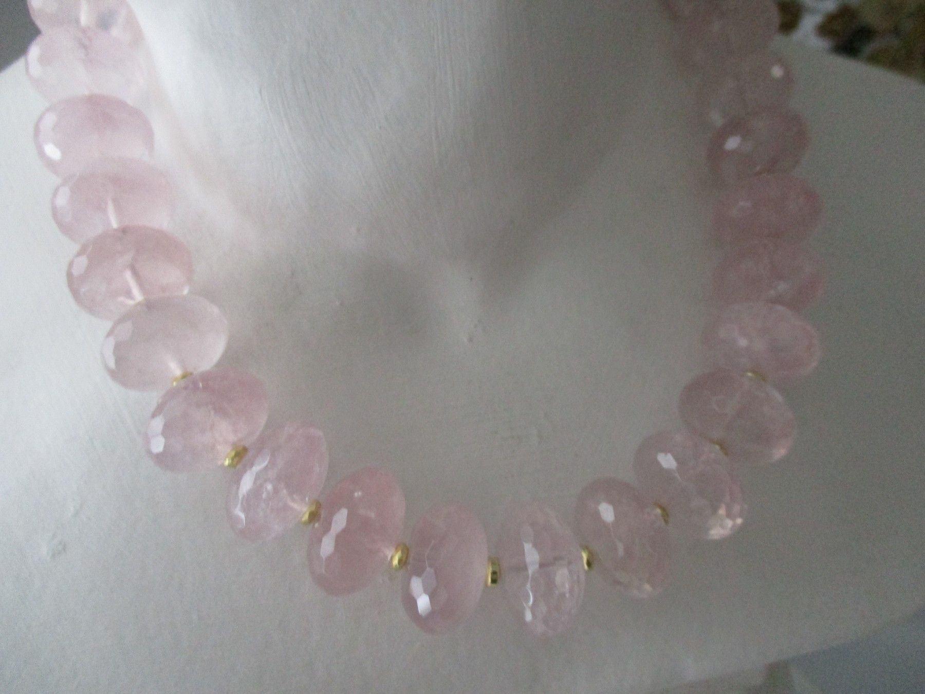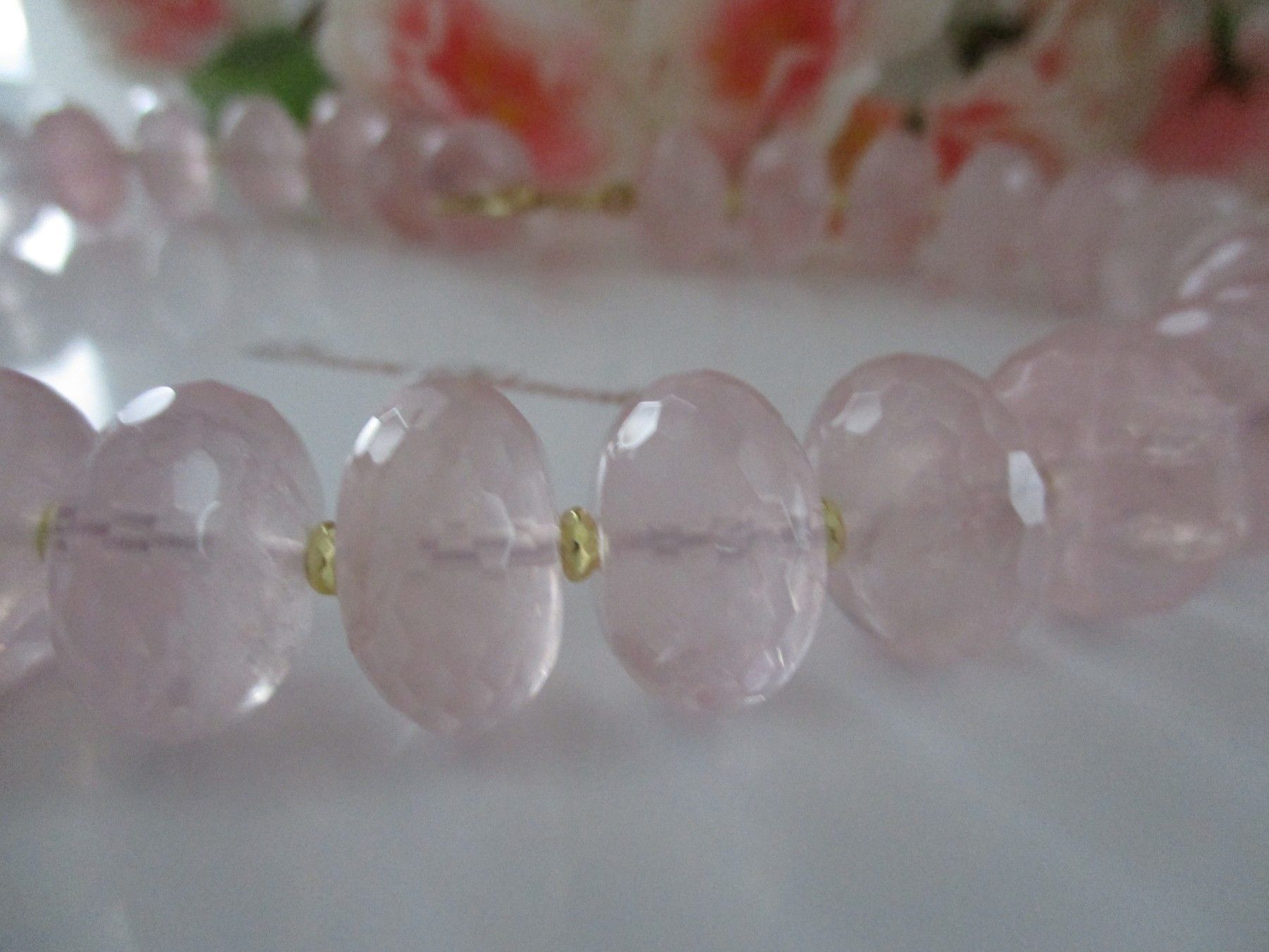 Limari Schmuck Rosenquarz Kette 49 cm Gold / Silber 925 Edelsteinkette UNIKAT