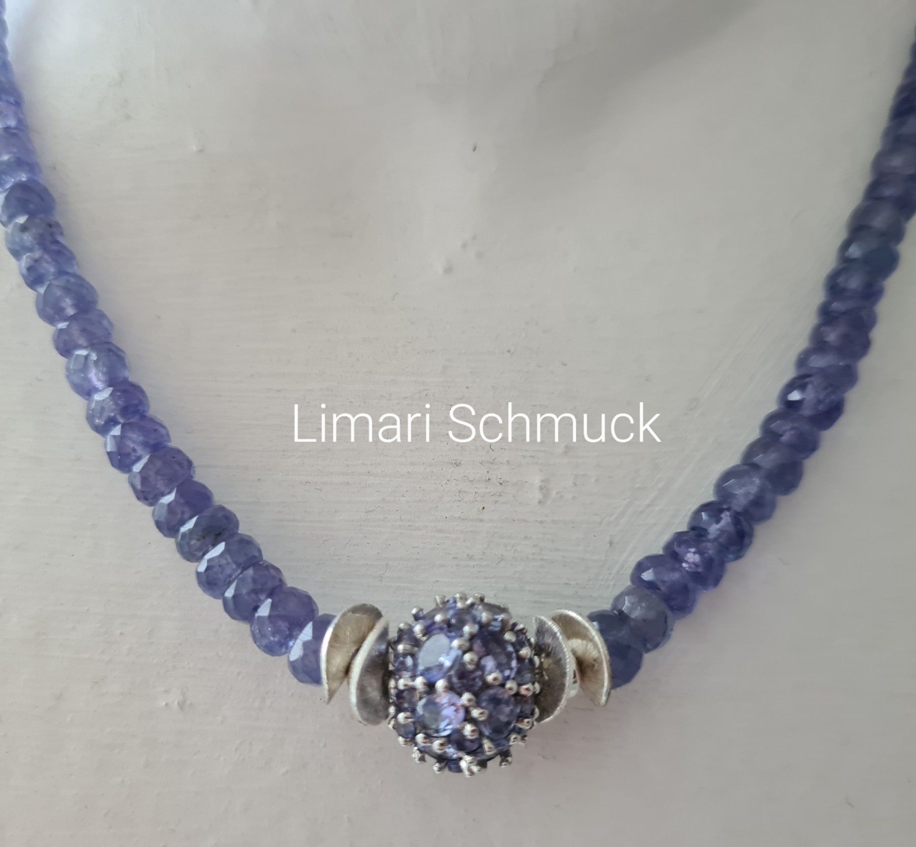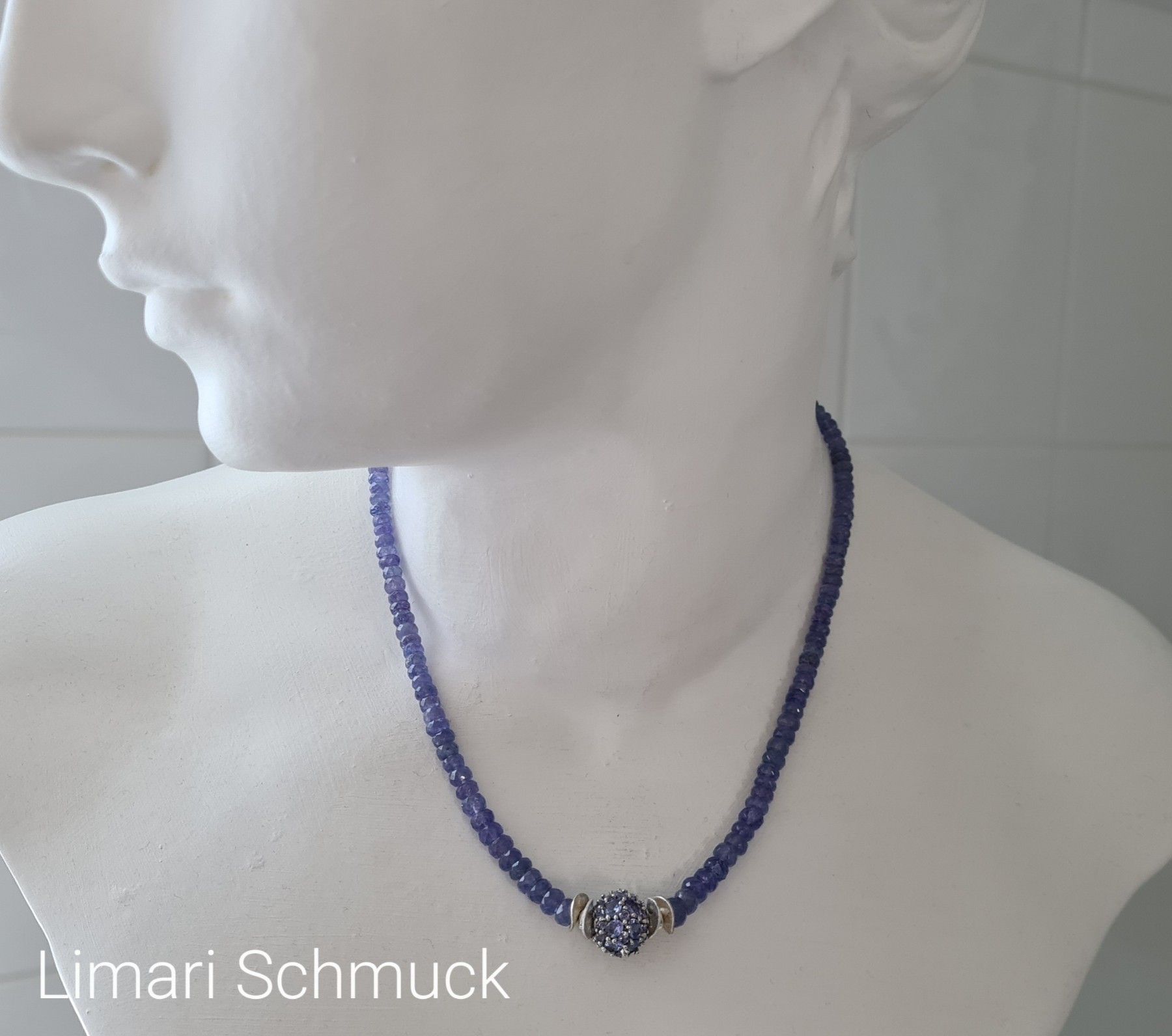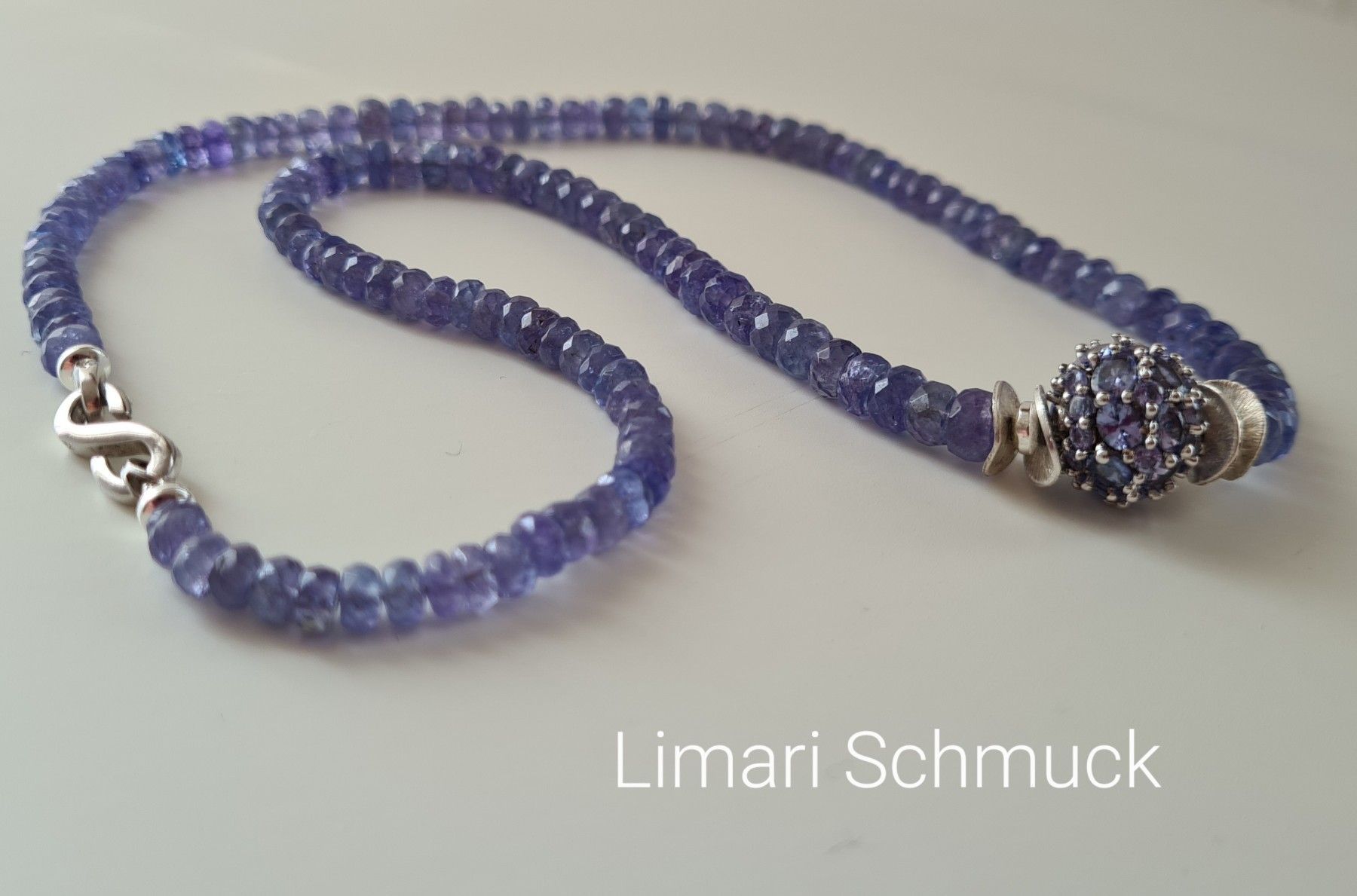 Limari Schmuck Tansanit Kette AAA 43 cm Hakenschließe 925 Silber rhodiniert