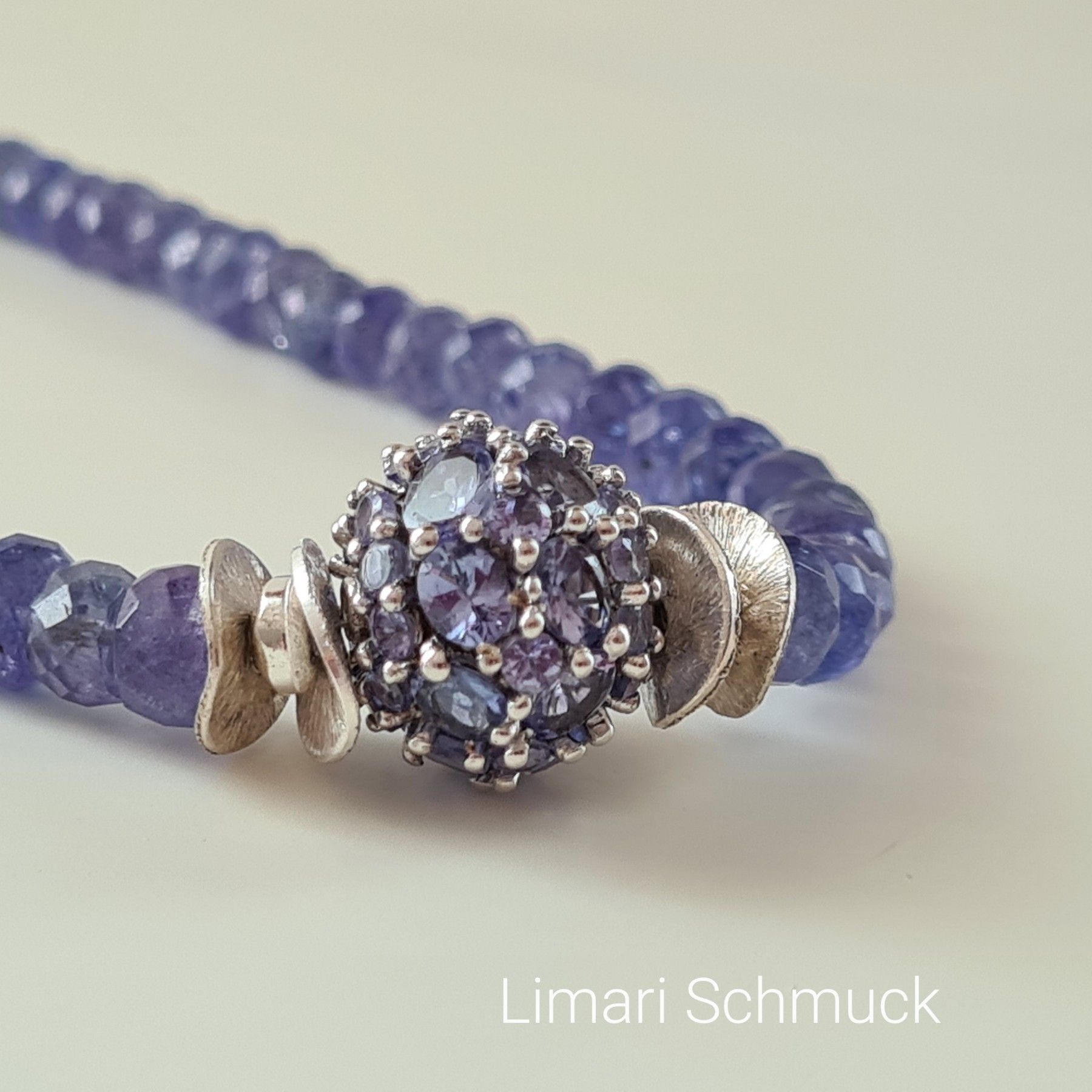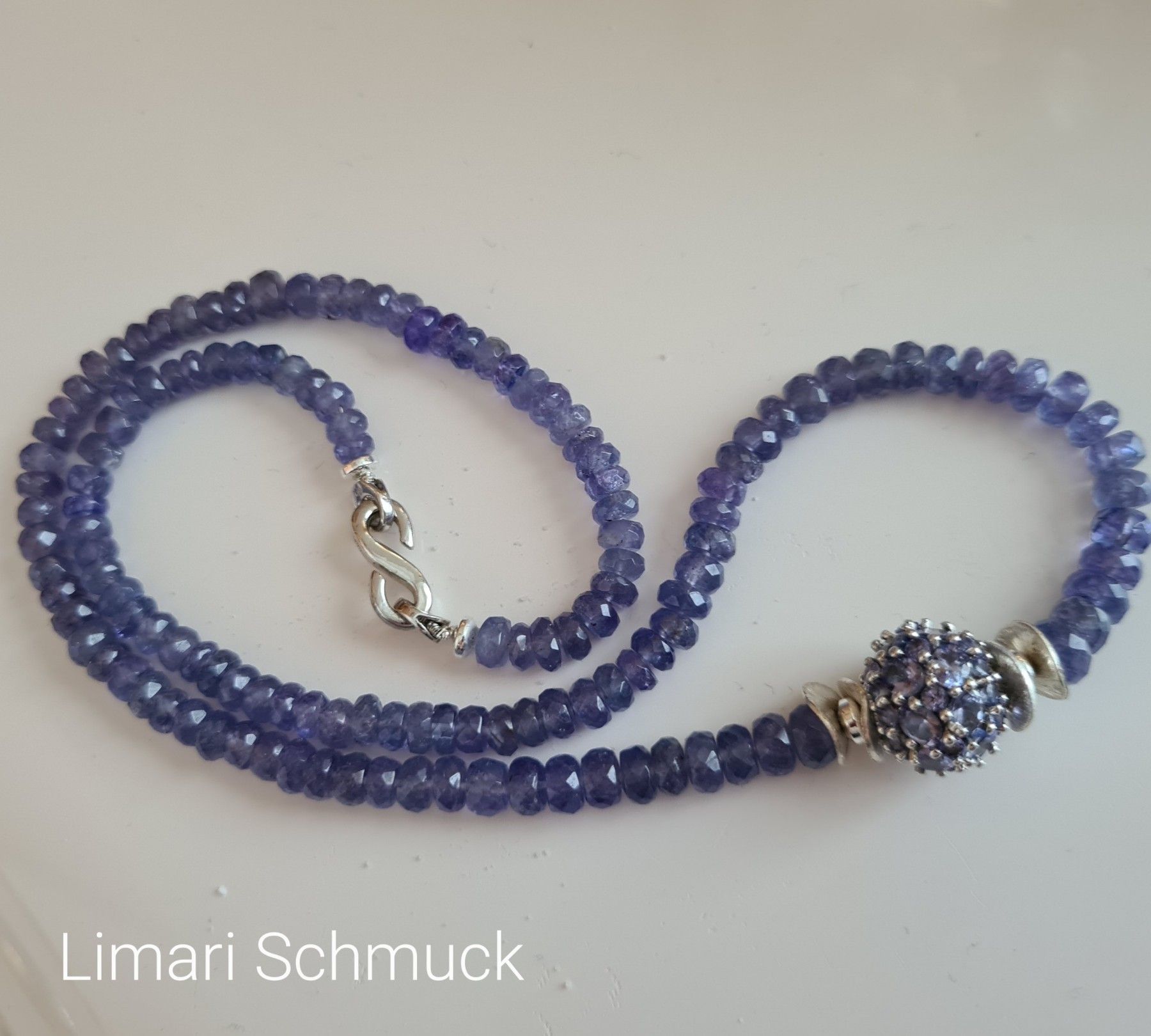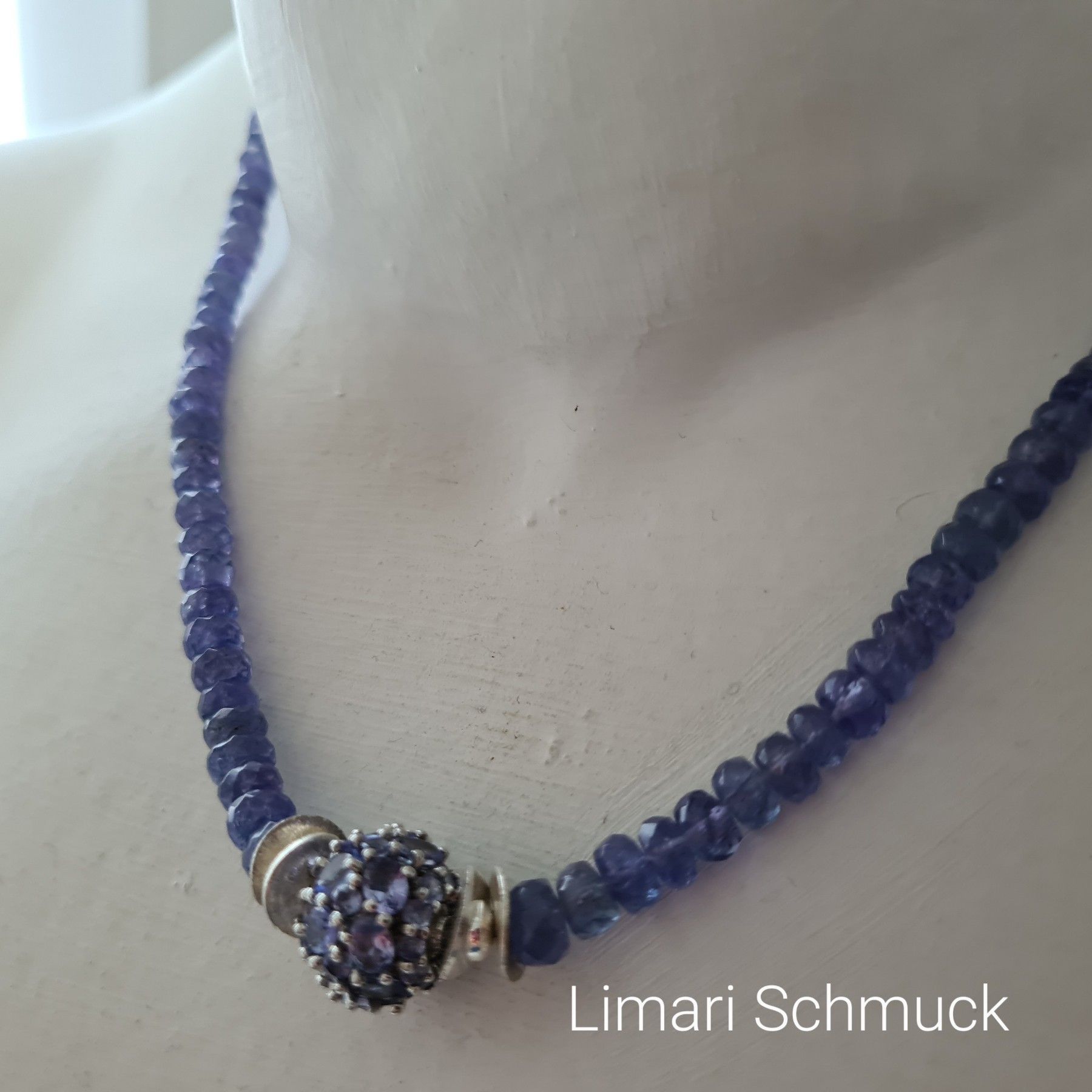 Limari Schmuck Tansanit Kette AAA 43 cm Hakenschließe 925 Silber rhodiniert