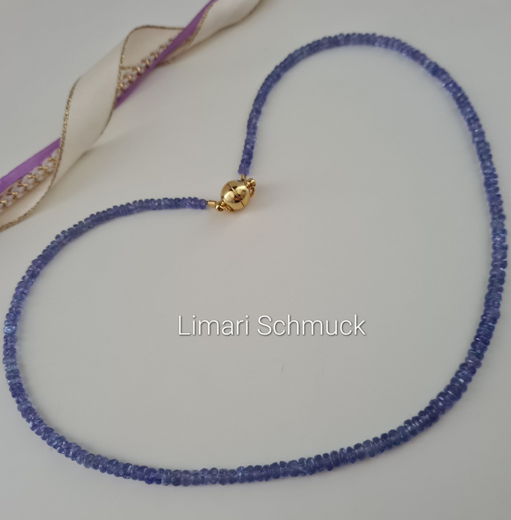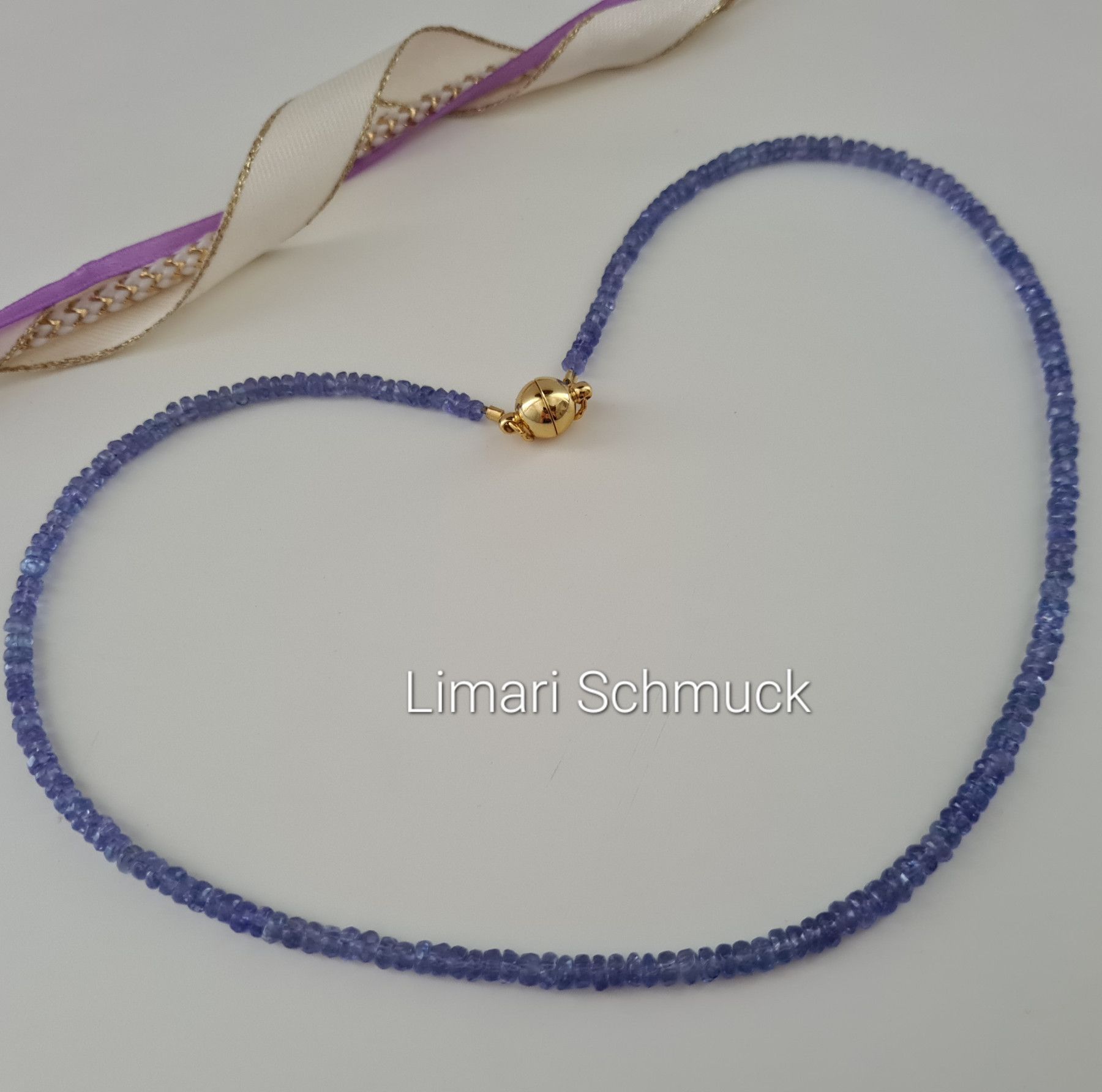 Limari Schmuck Tansanit Kette Collier 43 cm Magnetschließe vergoldet