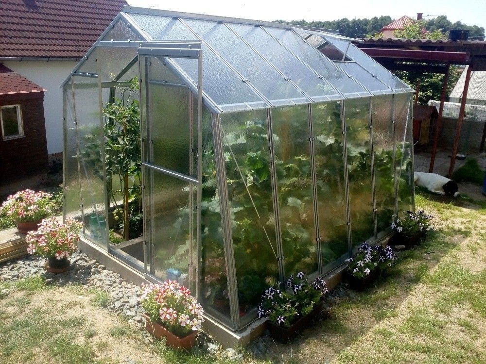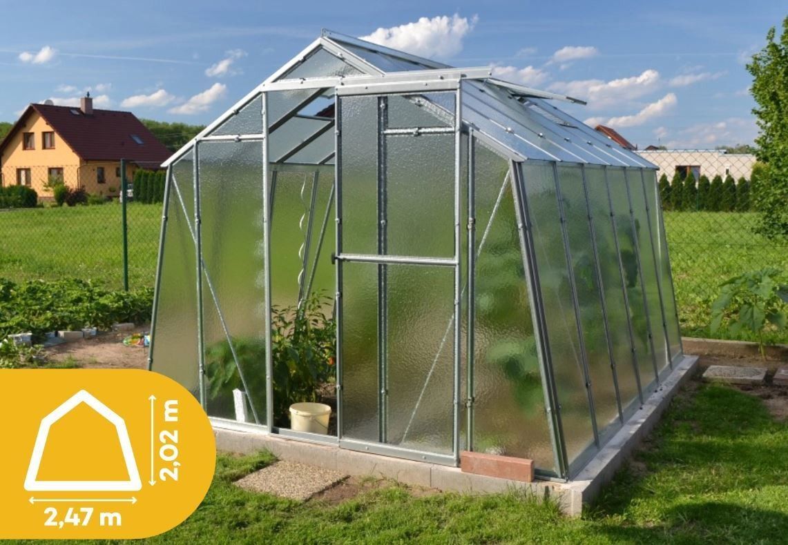 Gewächshaus GLAS – Glas 4 mm – Breite 2,47 m + Dachrinne + Lieferung LIEFERZEIT: ca. 2-4 Wochen (das Gewächshaus wird ausschließlich auf Bestellung gefertigt) Dank der einzigartigen, industriegeschützten Konstruktion ist das Gewächshaus einfach zu montieren. Die schrägen Seitenwände des Gewächshause