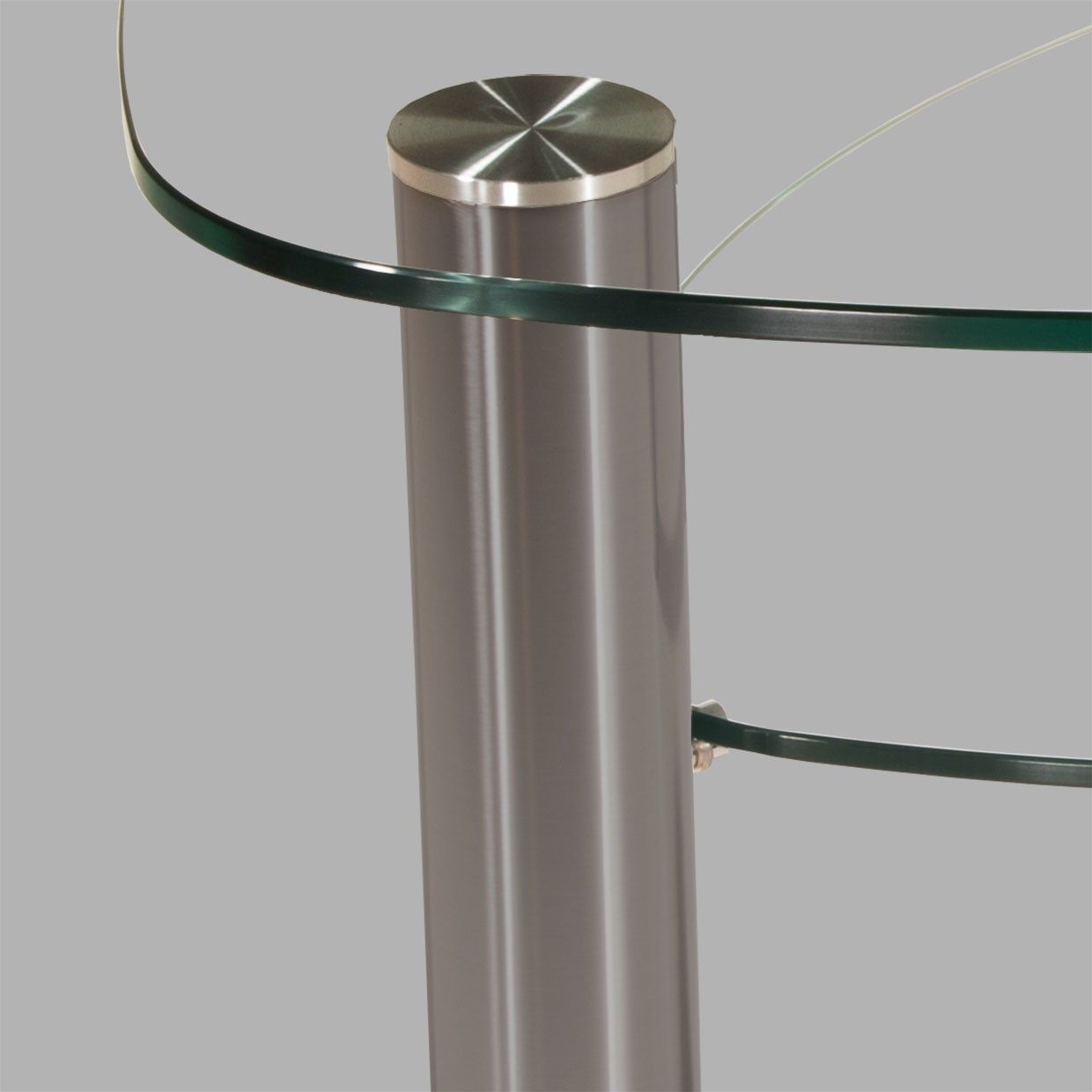 LIN-42H Couchtisch Glas 90cm Ø Wankelform mit oder ohne Ablage Chromgestell mit Rolle