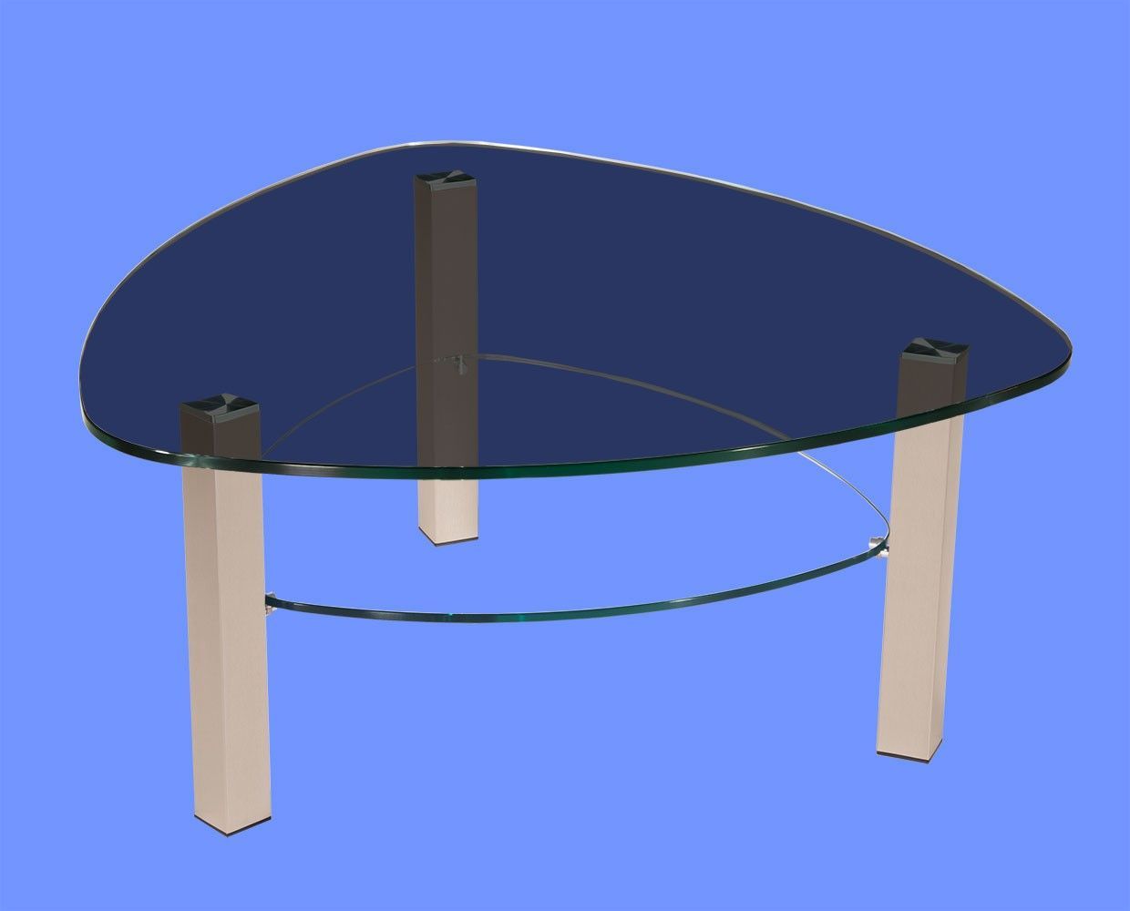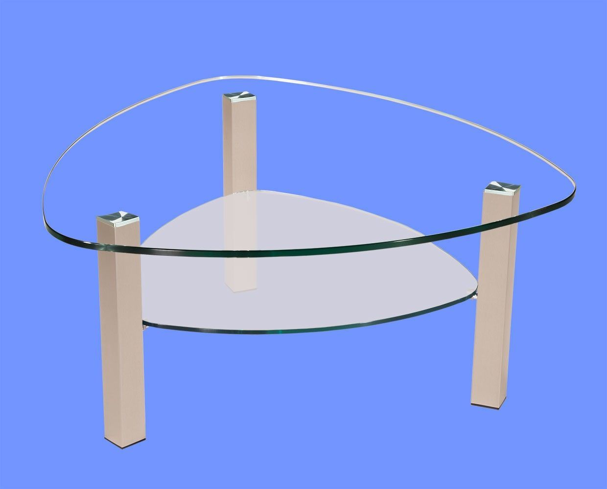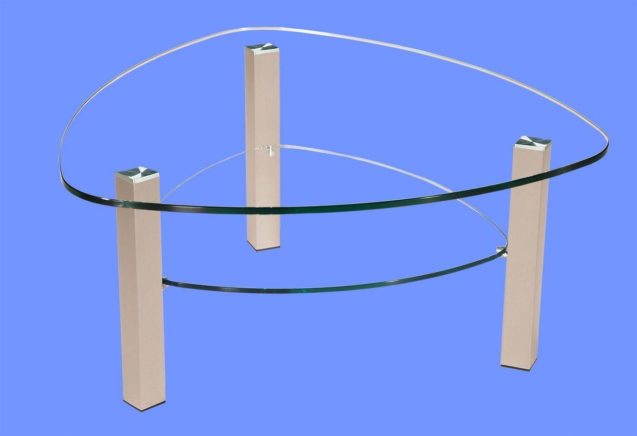 LIN-52H Couchtisch Glas Wankelform mit/ ohne Ablage echt Edelstahlgestell mit Rollen