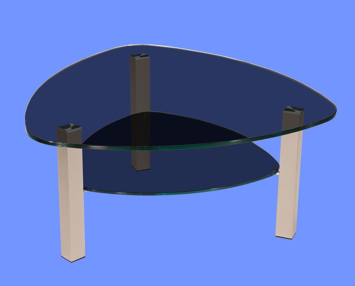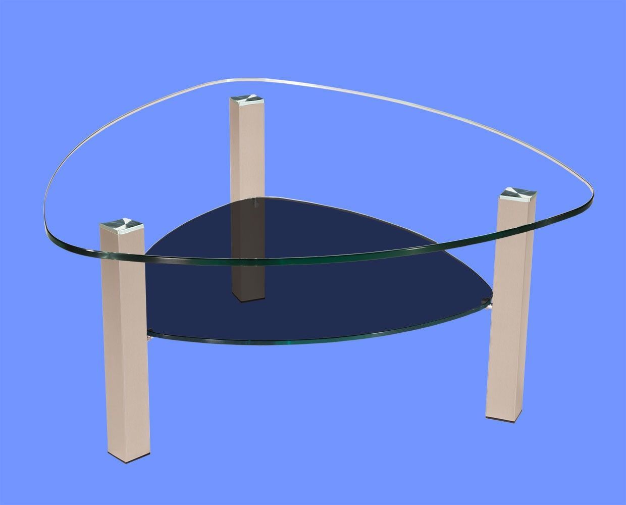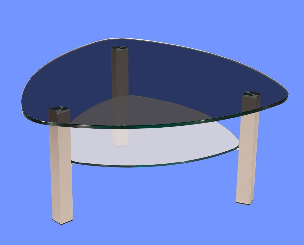 LIN-52H Couchtisch Glas Wankelform mit/ ohne Ablage echt Edelstahlgestell mit Rollen