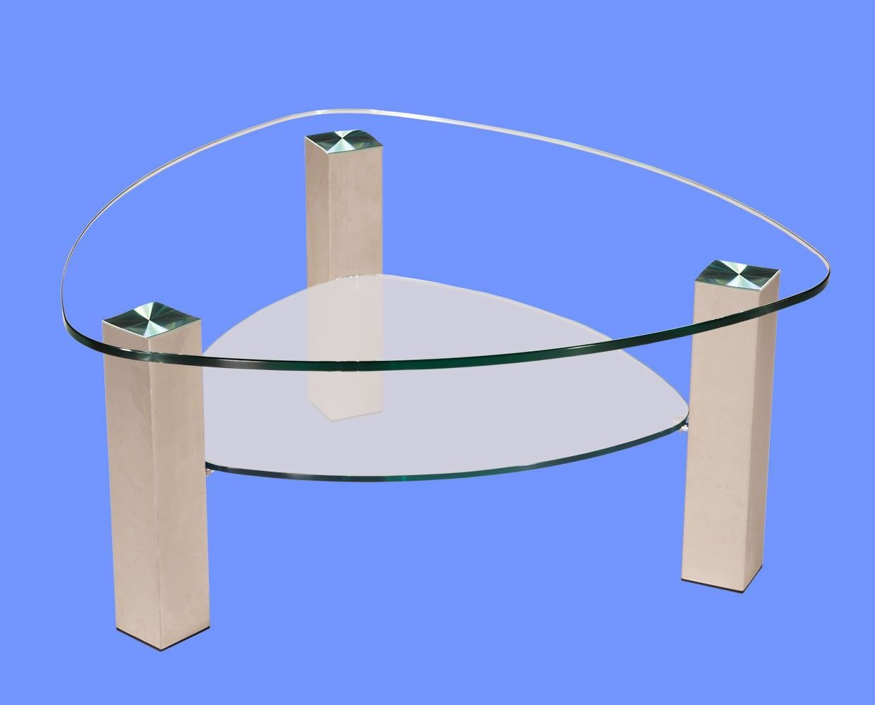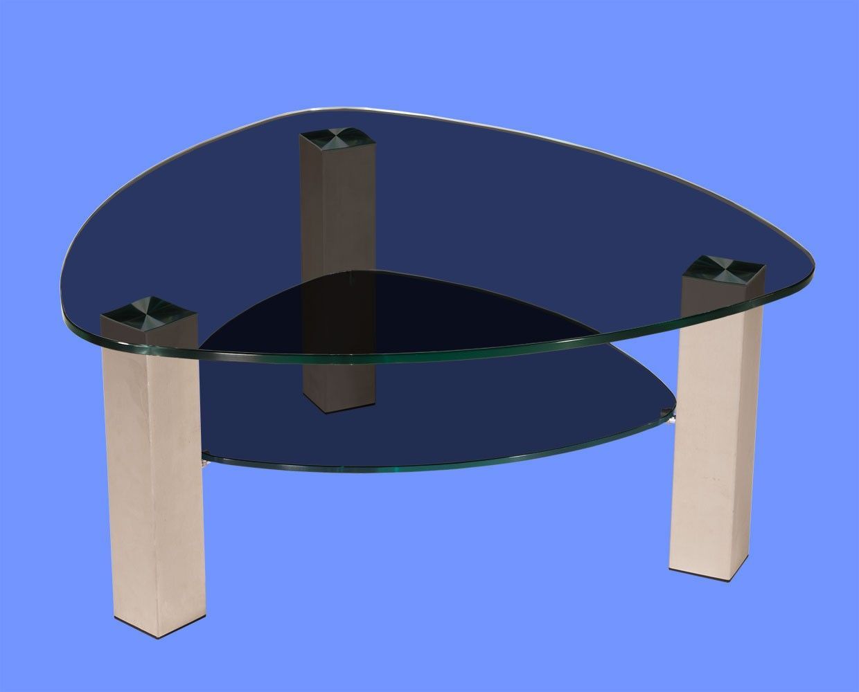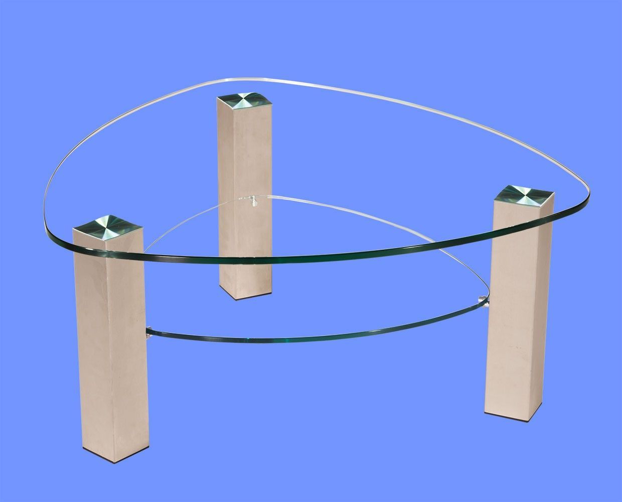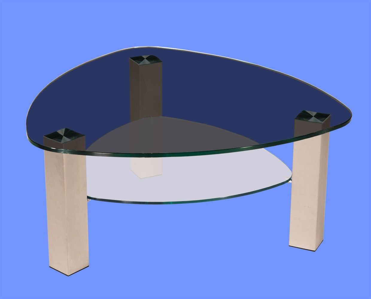 LIN-72H Couchtisch Glas Wankelform mit/ ohne Ablage echt Edelstahlgestell mit Rollen