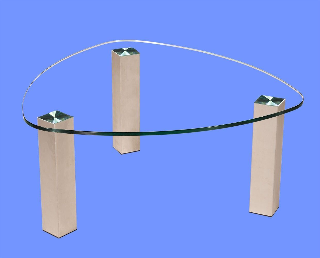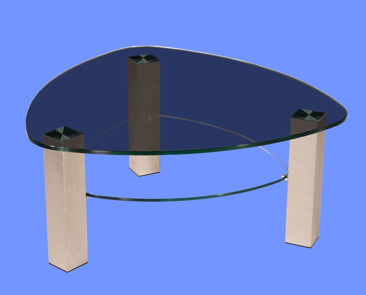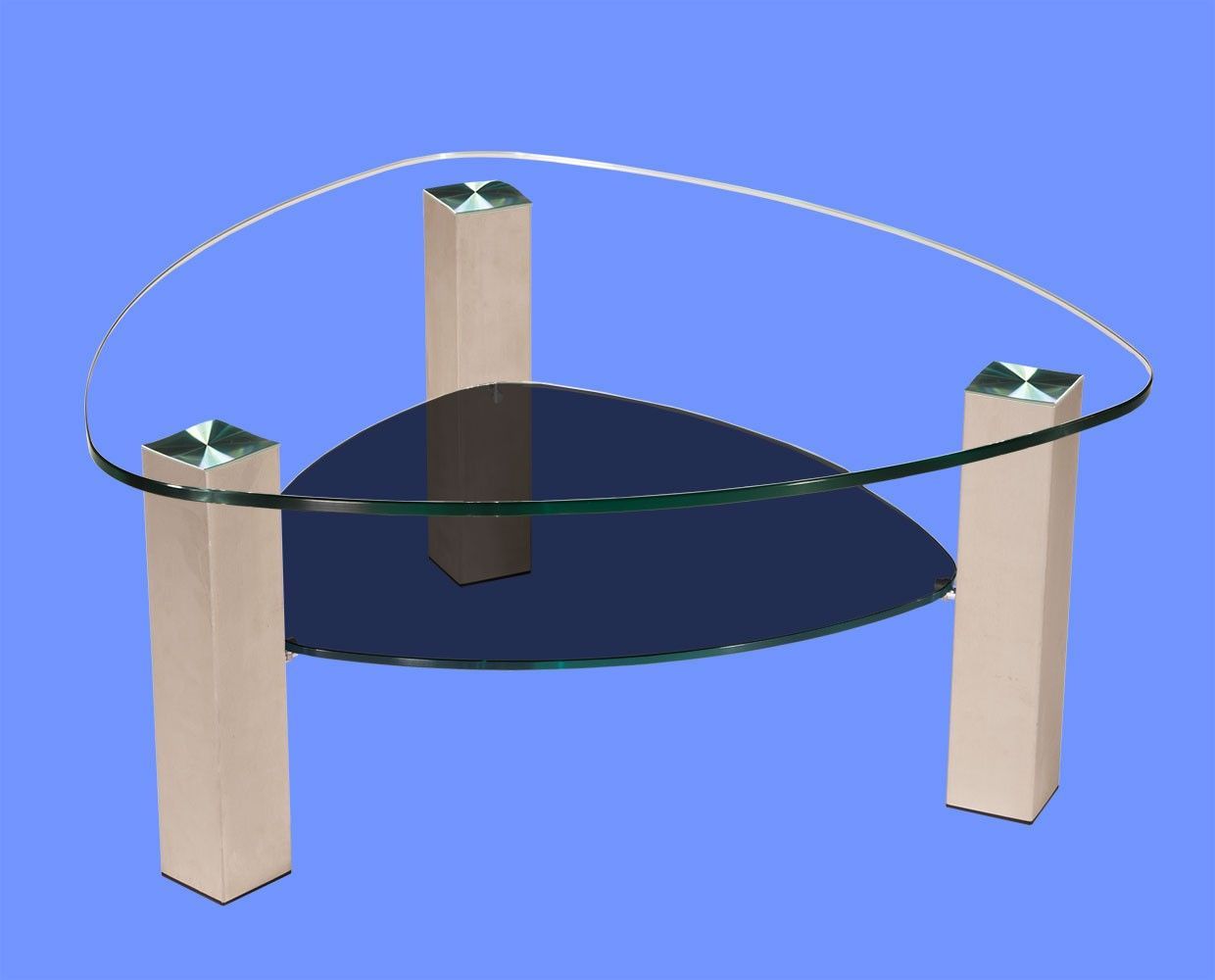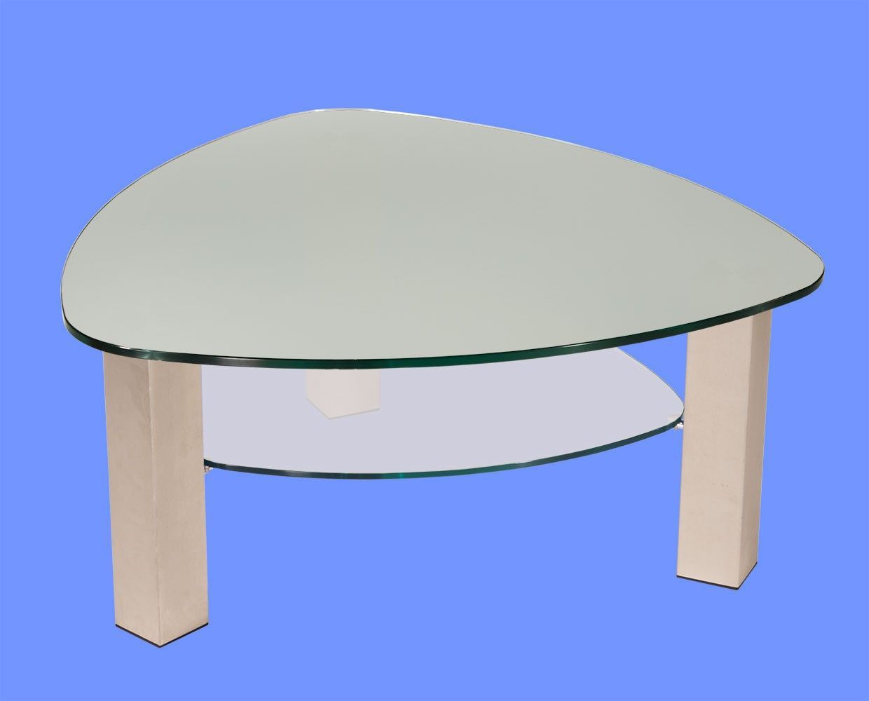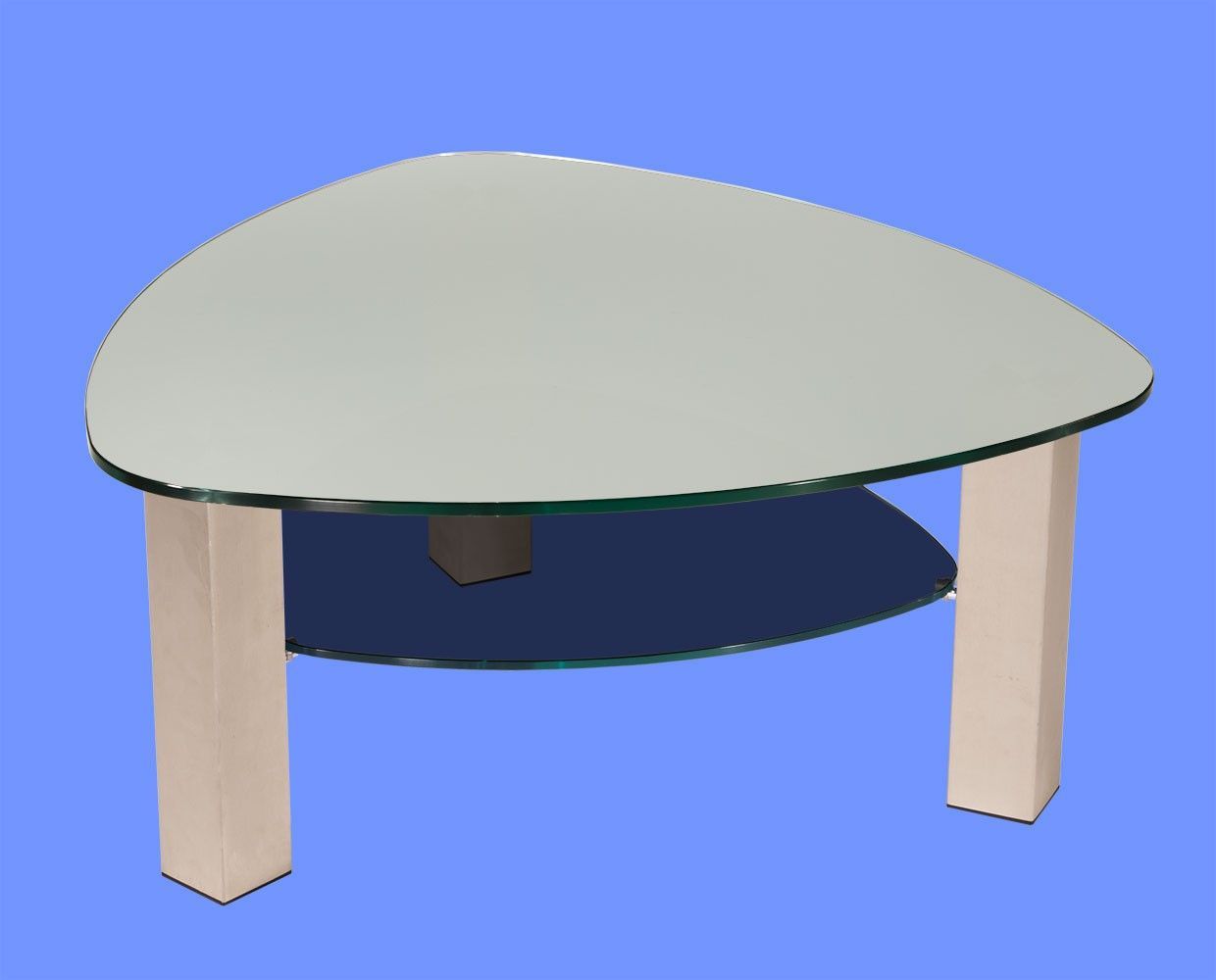LIN-72H Couchtisch Glas Wankelform mit/ ohne Ablage echt Edelstahlgestell mit Rollen