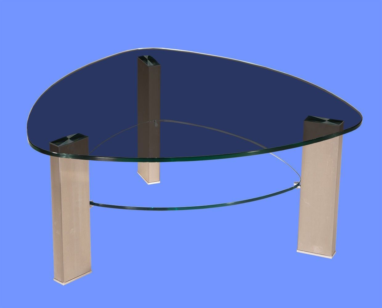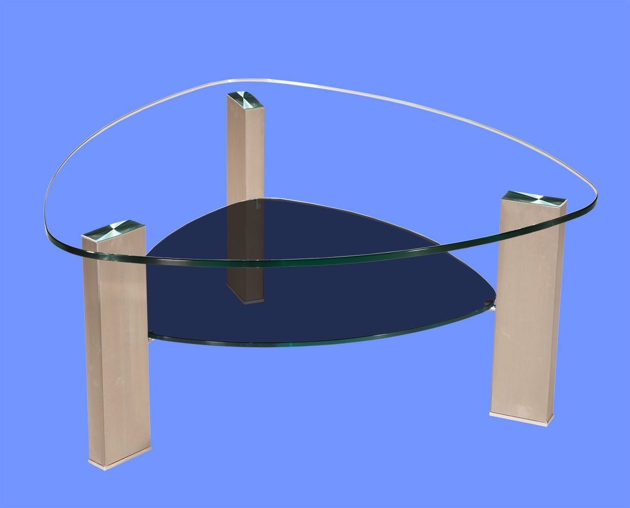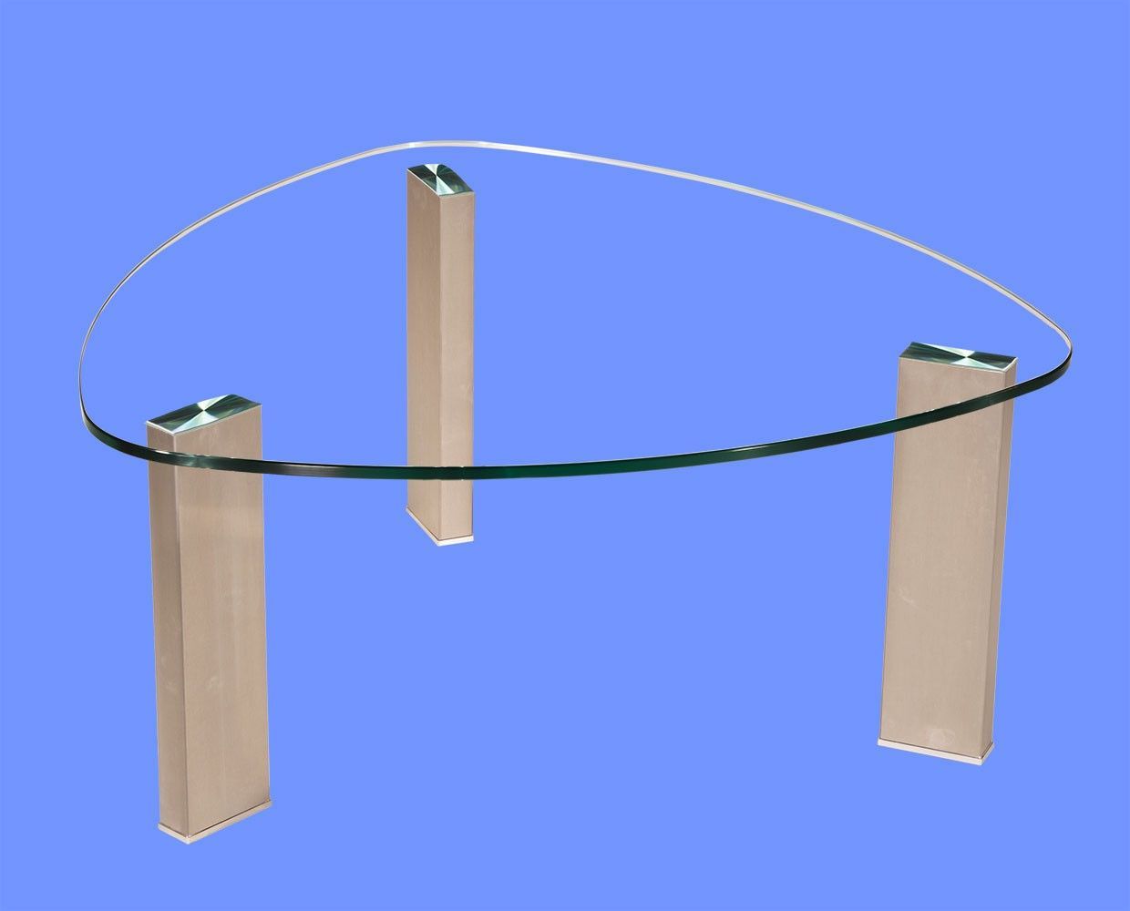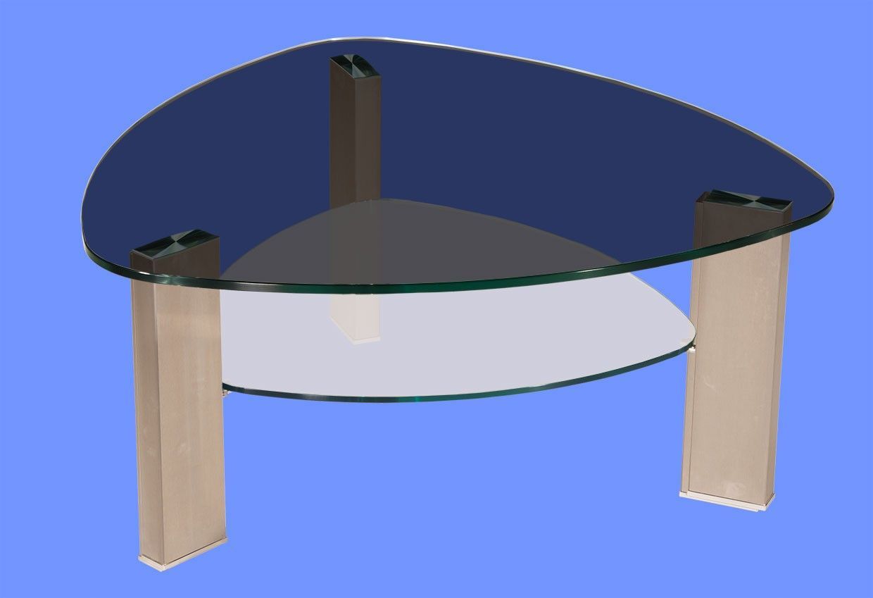LIN-9H Couchtisch Glas Wankelform mit/ ohne Ablage echt Edelstahlgestell gebürstet
