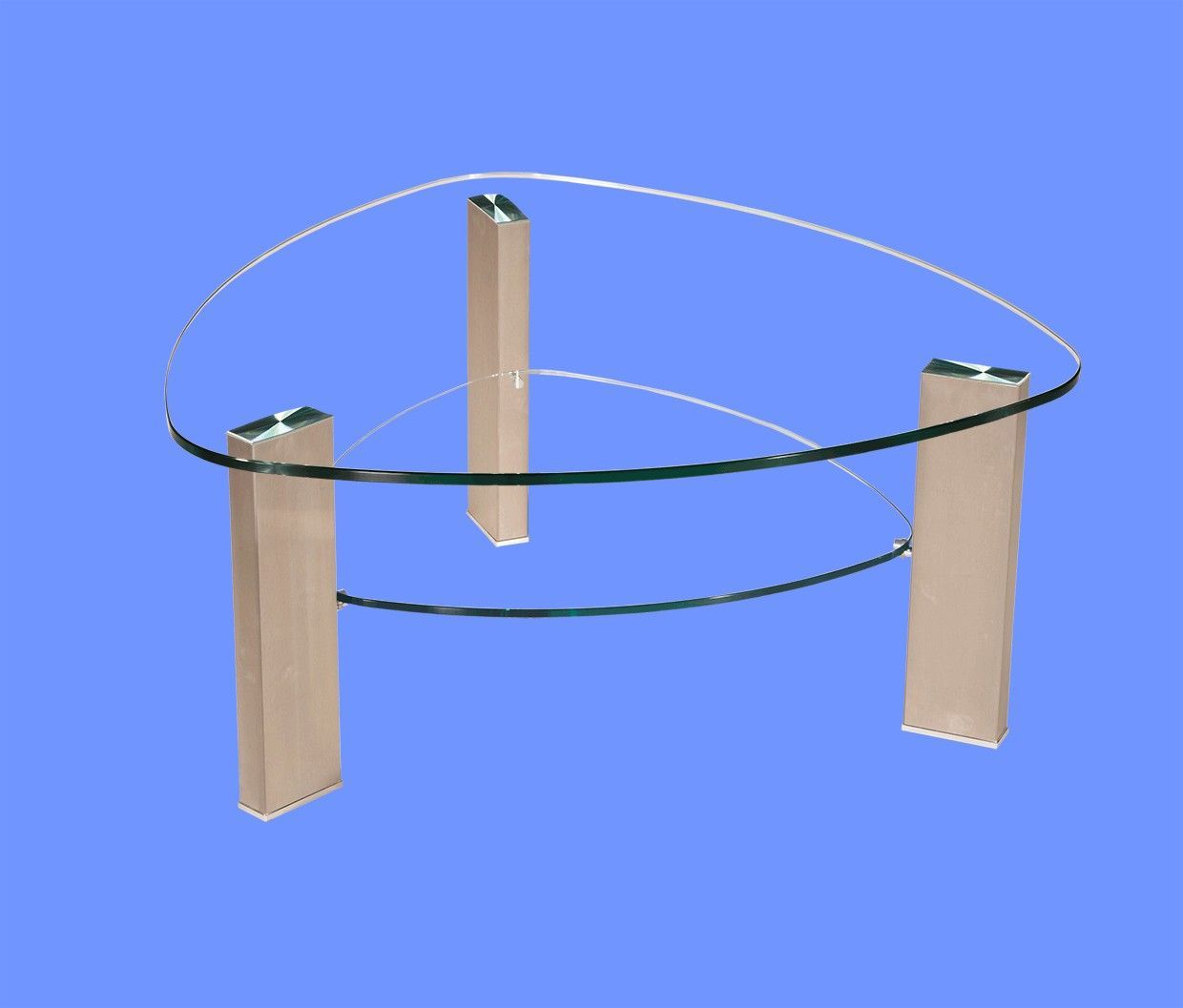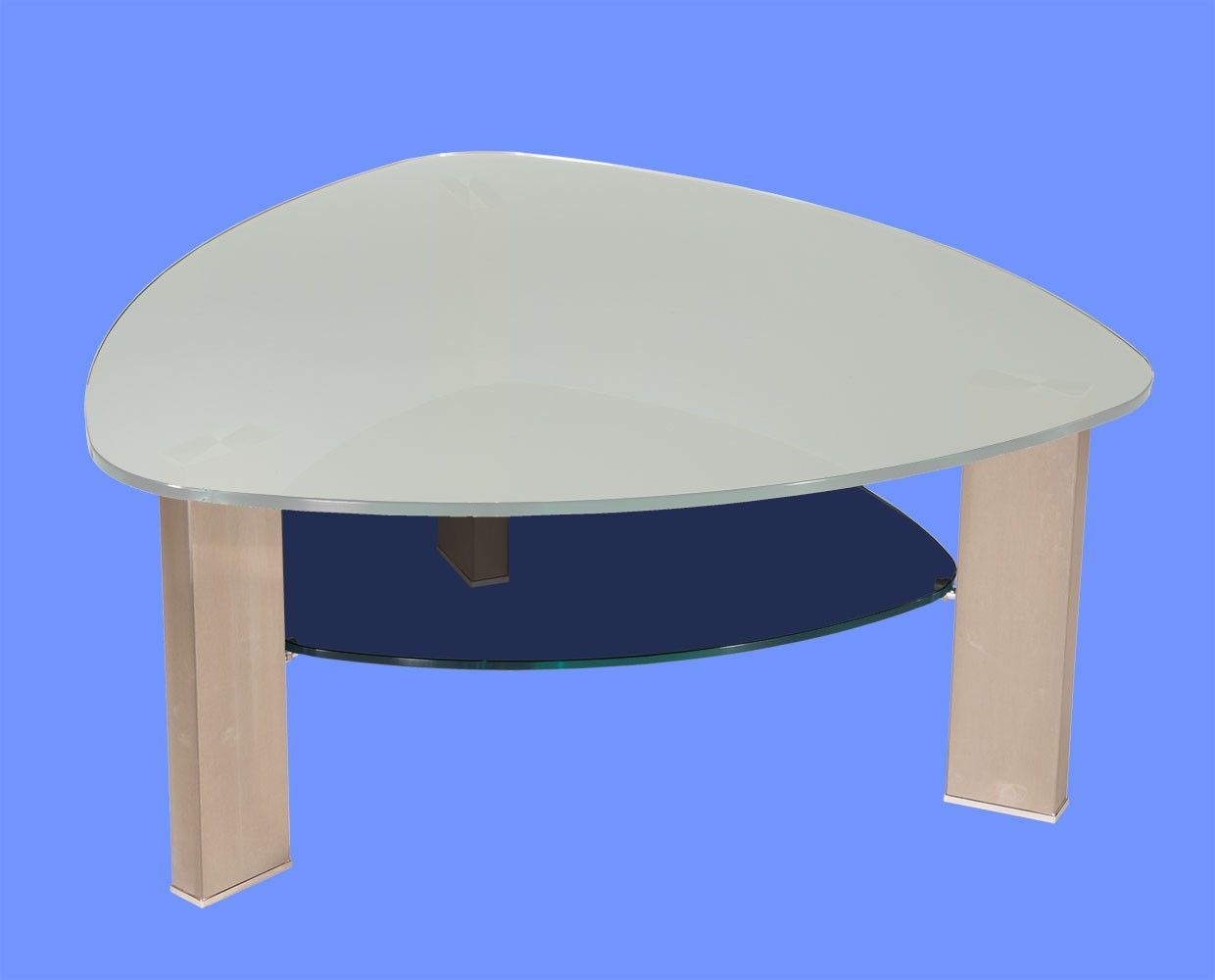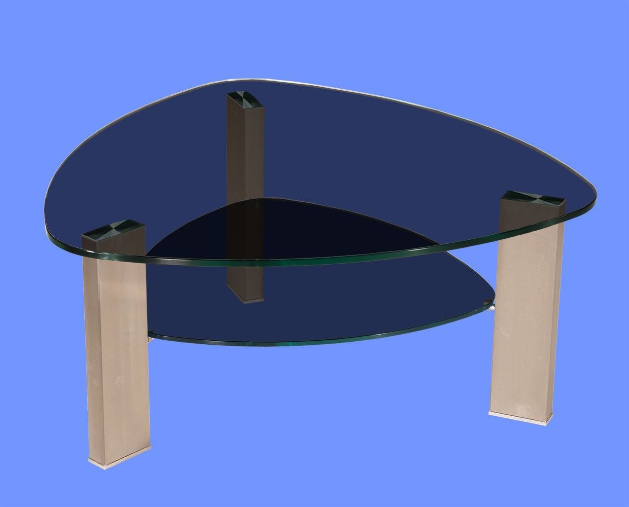 LIN-9H Couchtisch Glas Wankelform mit/ ohne Ablage echt Edelstahlgestell gebürstet