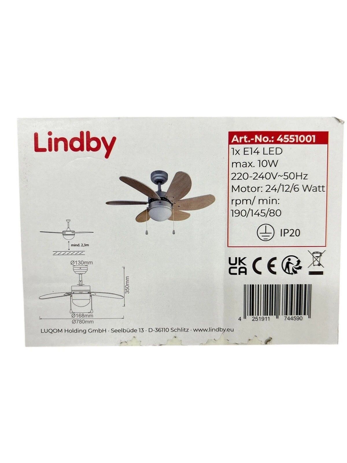 Lindby Deckenventilator mit Lampe ´Minja´ (Modern) in Alu aus Metall (1 flammig,