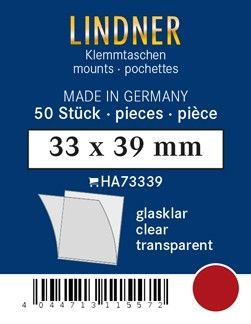 Lindner ha73339 50er Packung Zuschnitte 33 mm x 39 mm Unterfolie glasklar