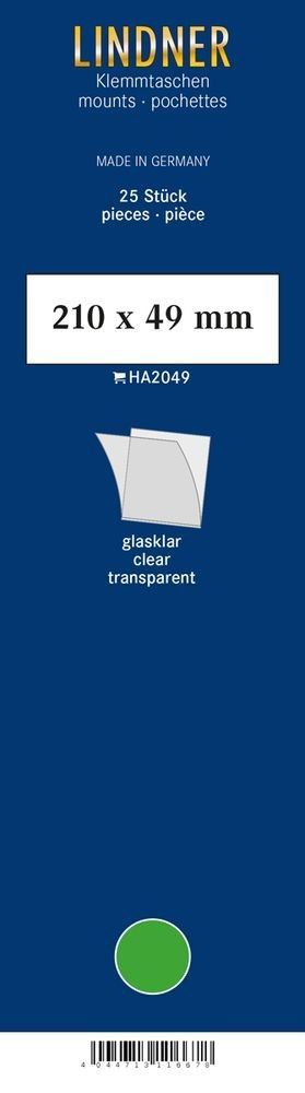 Lindner Klemmtaschen Streifen glasklar 210 mm lang x höhe 49 mm