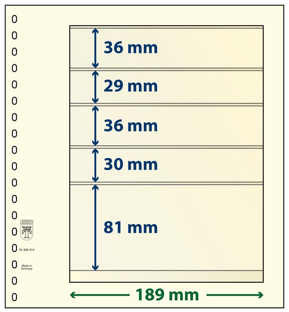 Lindner T-Blanko-Blätter 5 Streifen: 81 mm, Einzelblatt