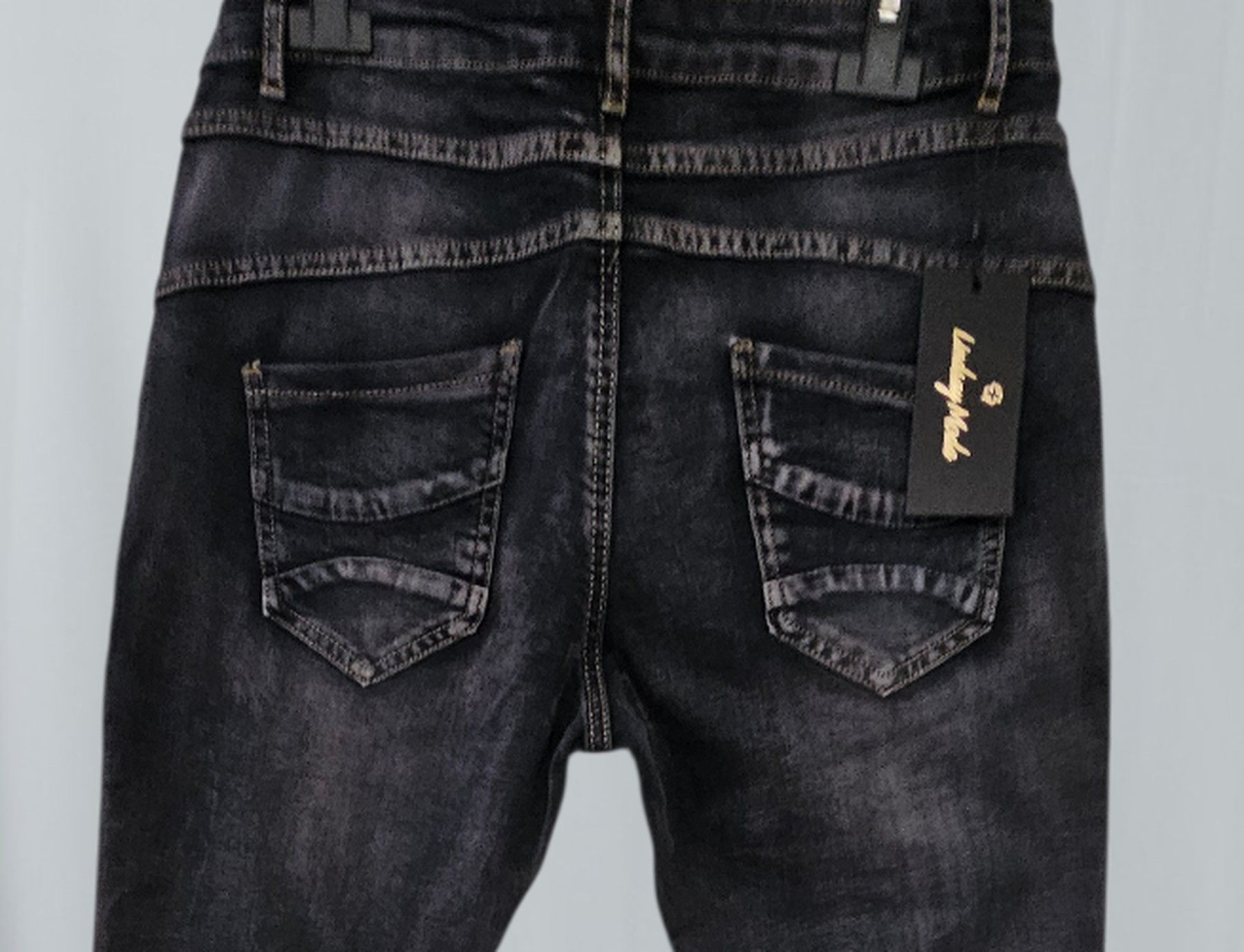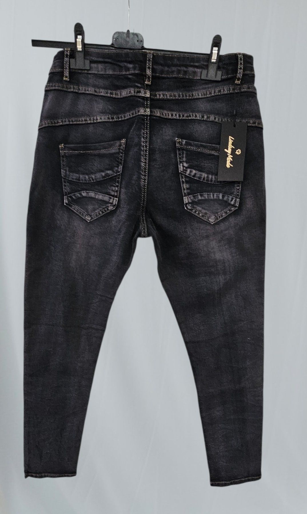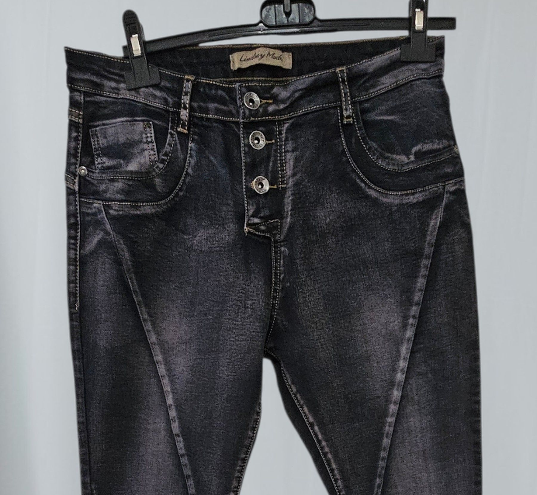 Lindsay Moda Jeans Stretch Hose Knöpfe Waschung Taschen Quernaht Schwarz Gr. M