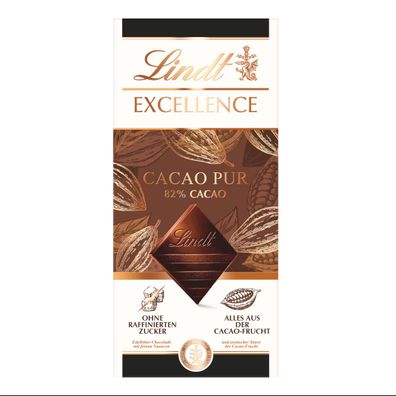 • Lindt Excellence Cacao Pur Schokolade aus der Cacao Frucht 50g