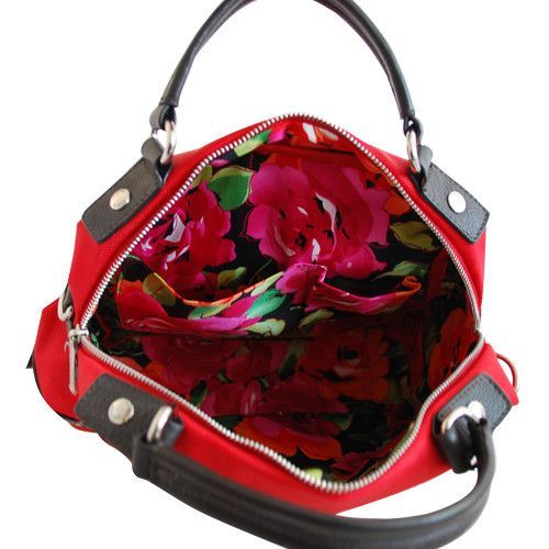 Linea Sogno Damen Handtasche Henkeltasche Schultertasche rot creme Nylon NEU
