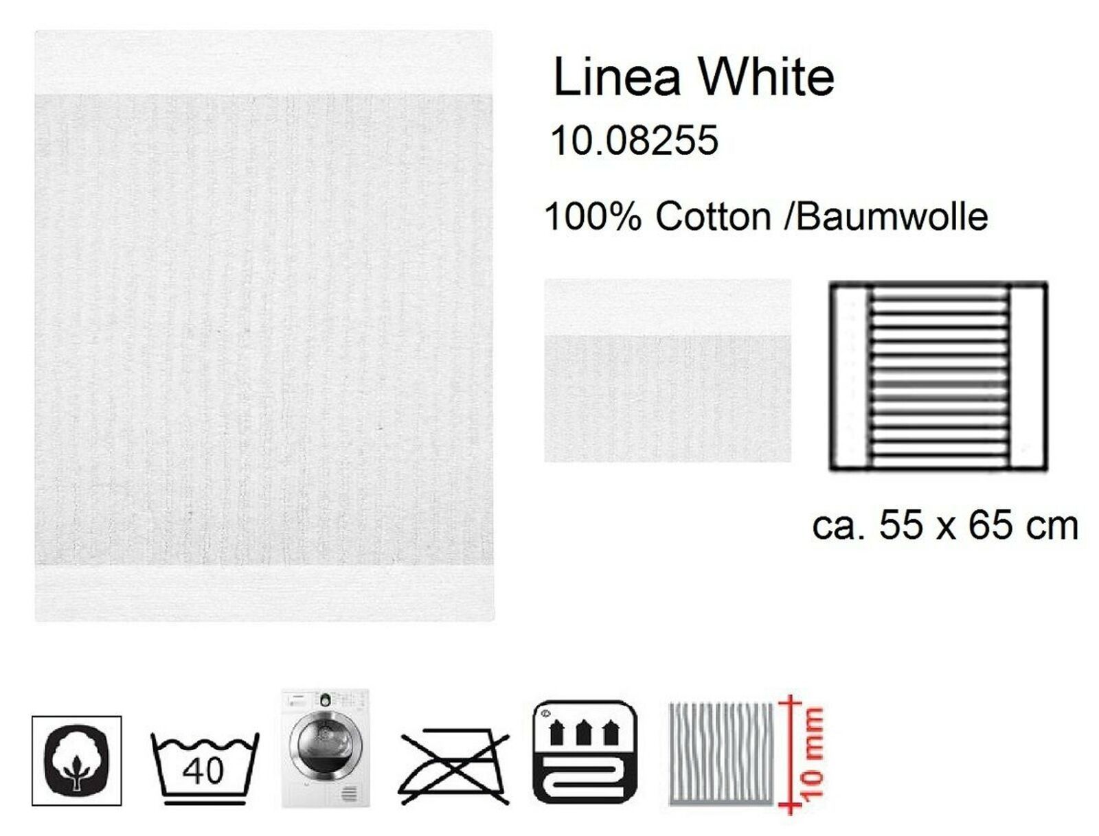 Linea White Badteppich 55x65cm - 100% Baumwolle - beidseitig verwendbar