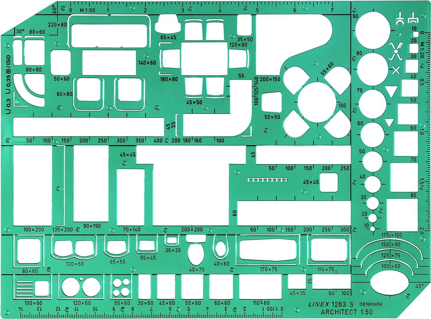 Linex 1263S Möbel-Schablone für Architekten, für Grund- und Aufrissrisszeichnungen, M