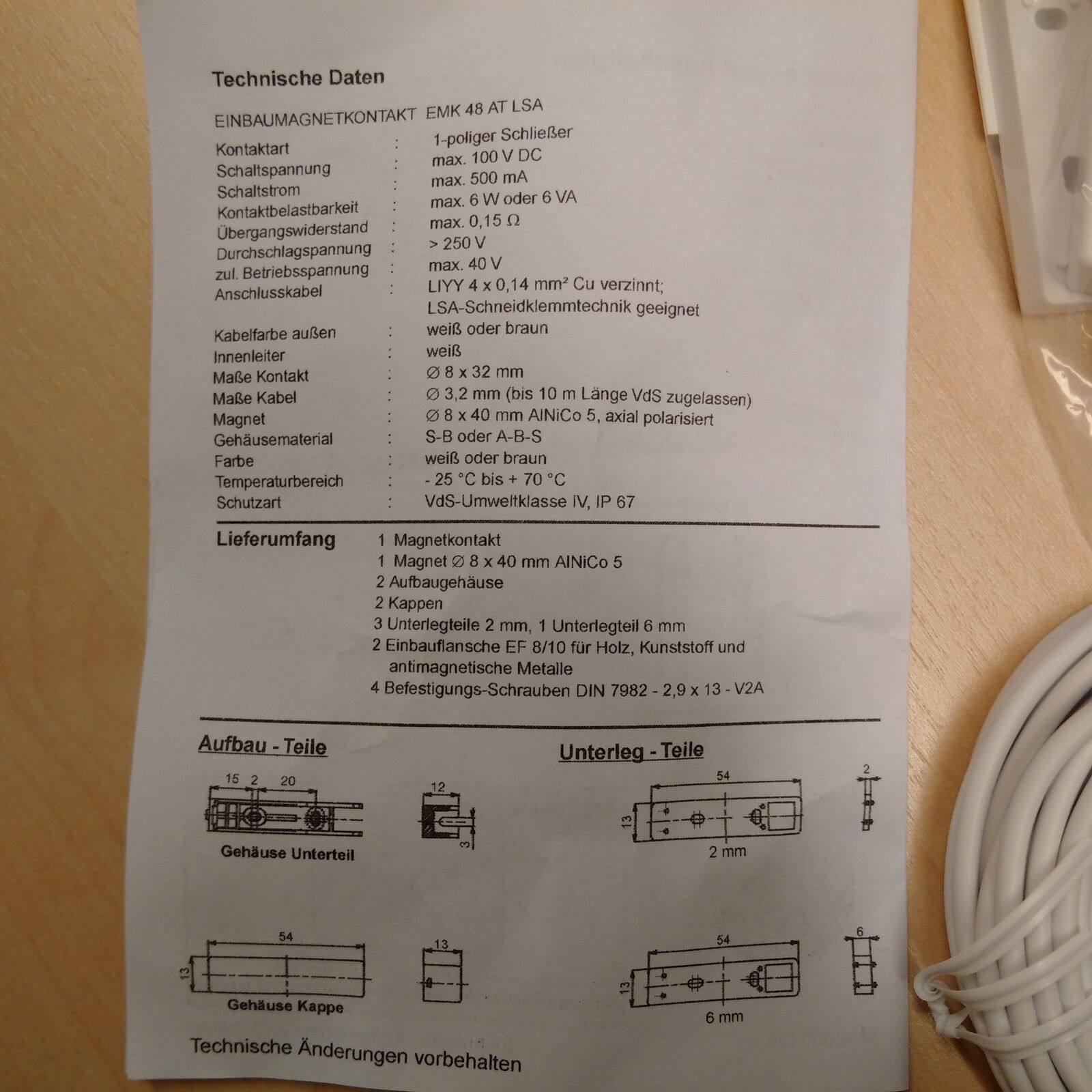 Link Link EMK 48 AT Magnetkontakt VdS Klasse B für Aufbau und Einbau geeignet