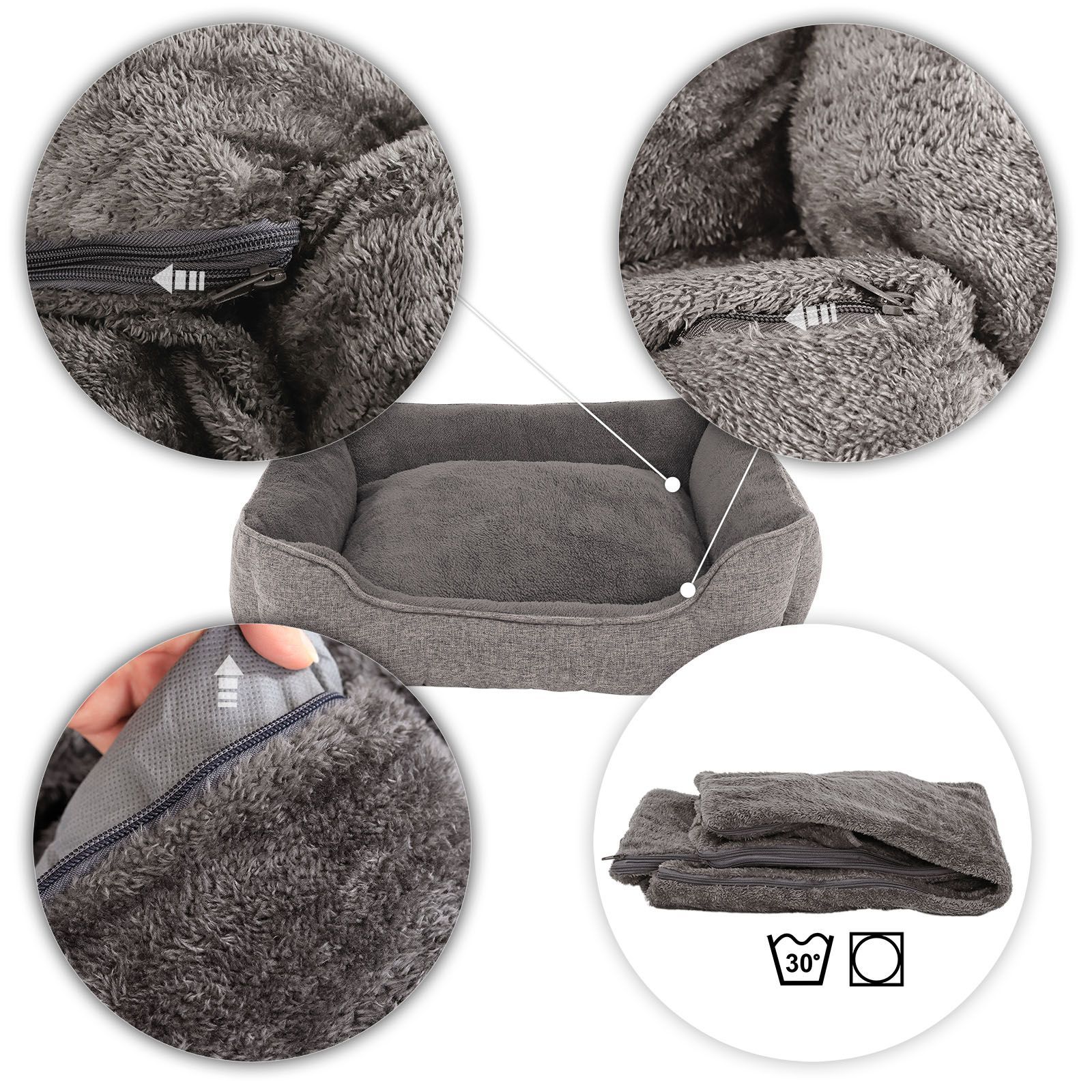 lionto Hundebett meliert Hundekissen Hundekörbchen Bezug abnehmbar Größe wählbar grau