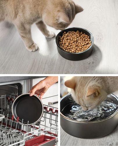 lionto Katzennapf doppelwandig, 17 cm Durchmesser, 825 ml, schwarz