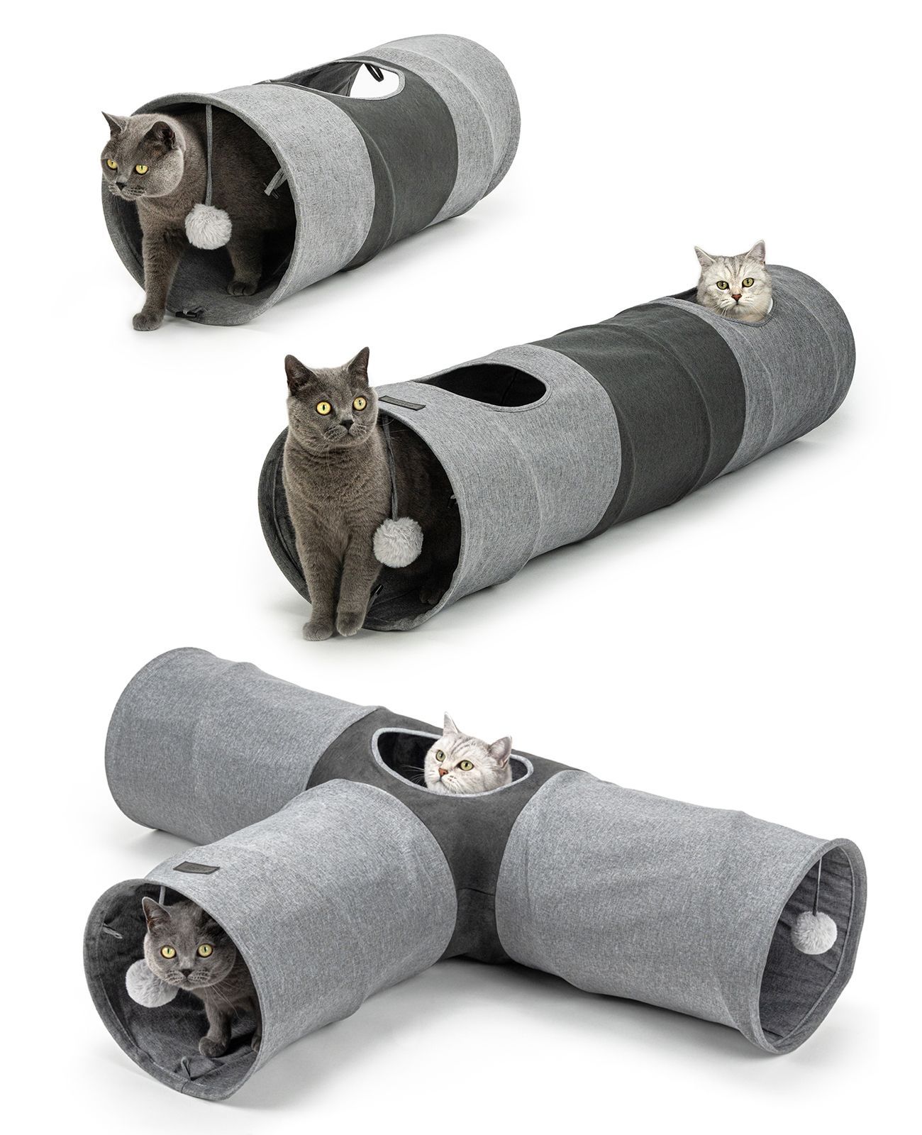lionto Katzentunnel Rascheltunnel Tunnel für Haustiere Spieltunnel mit Ball faltba