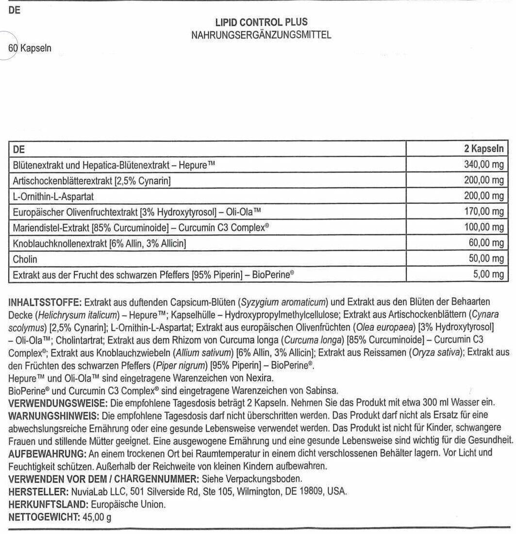 Lipid Control Plus - 60 Kapseln - Neu&OVP - Blitzversand