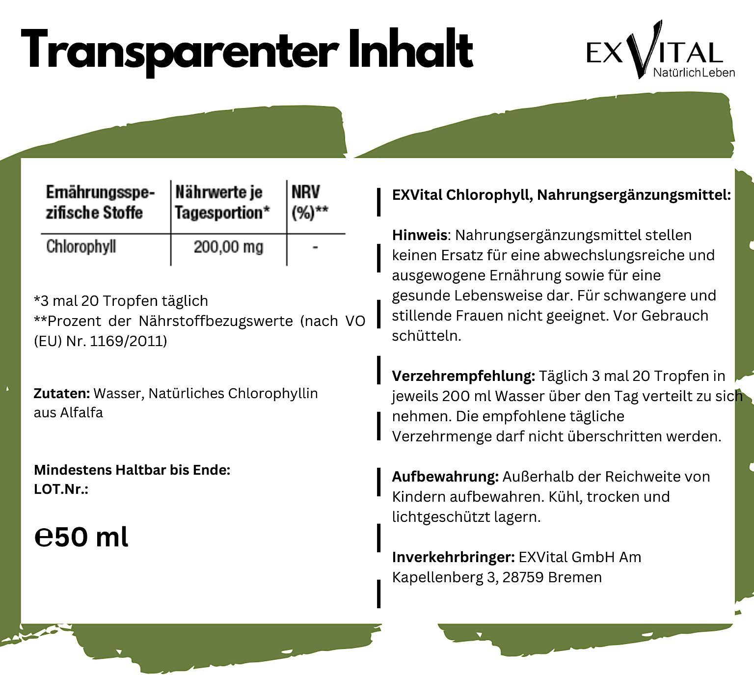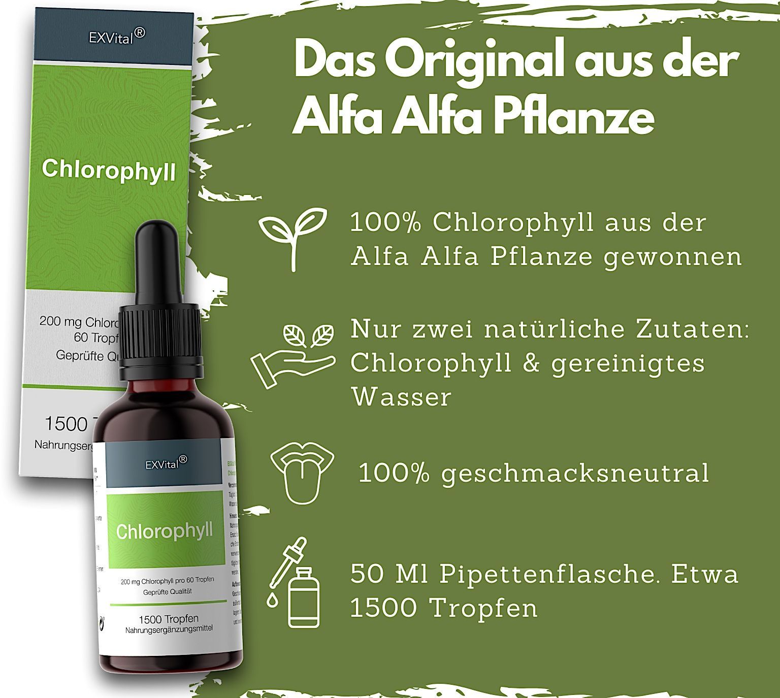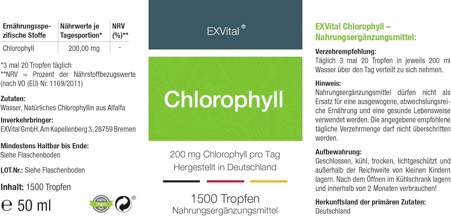 Liquid Chlorophyll aus Alfalfa, 50 ml Tropfen200 mg natürliches Chlorophyll proTag