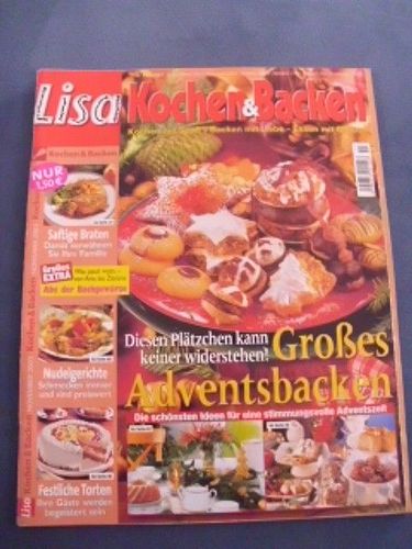 Lisa Kochen & Backen 11 - großes Adventsbacken Braten Nudelgerichte Torten Plätz Das Heft ist zwar gebraucht, aber in einem guten Zustand (normale Gebrauchsspuren). Es stammt aus einem Nichtraucher Büchersammlung, leider muss ich meine große Büchersammlung aus Platzgründen auflösen. Schauen Sie