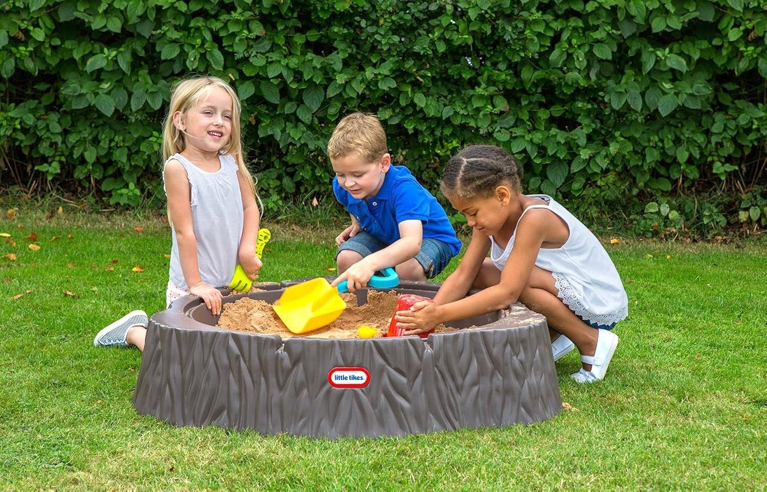 Little Tikes Little Tikes Woodland Sandkasten Baumstamm-Design mit Deckel & 3 Sitzflächen Kinder