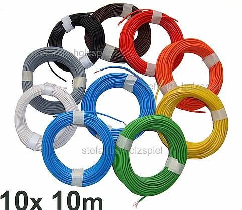 Litze 1-adrig Modellbahn-Kabel 10x10m=100m, Farben wählbar