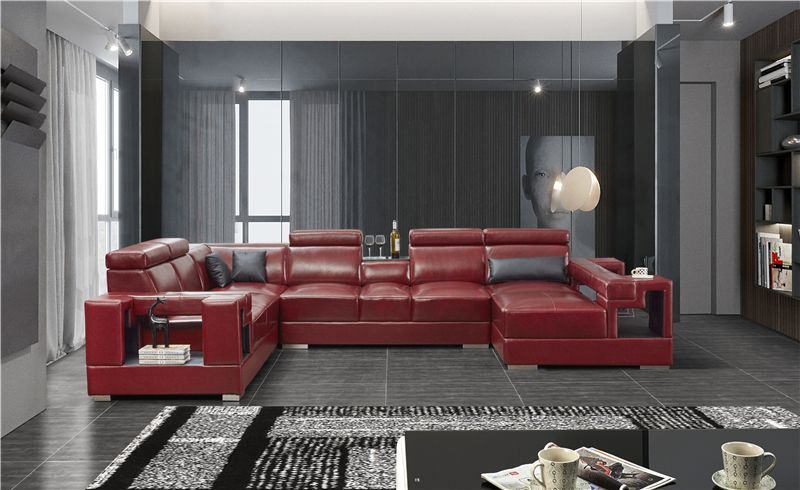 Living Area Corner Couch Set Sofa Upholstery Coffee Table U - Shape Red Couches