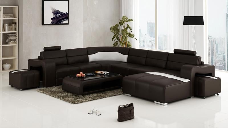 Living Area Upholstery Seat Set Corner Sofa Big Couches + 2 Stools U - Shape New