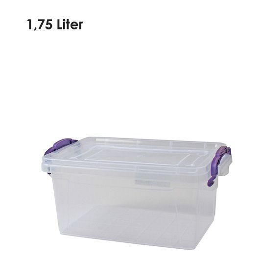 Livinja Box SOFIA 1,75 L, 21,5x14,5x9,5cm, Transparent mit schwarzen Griffen,