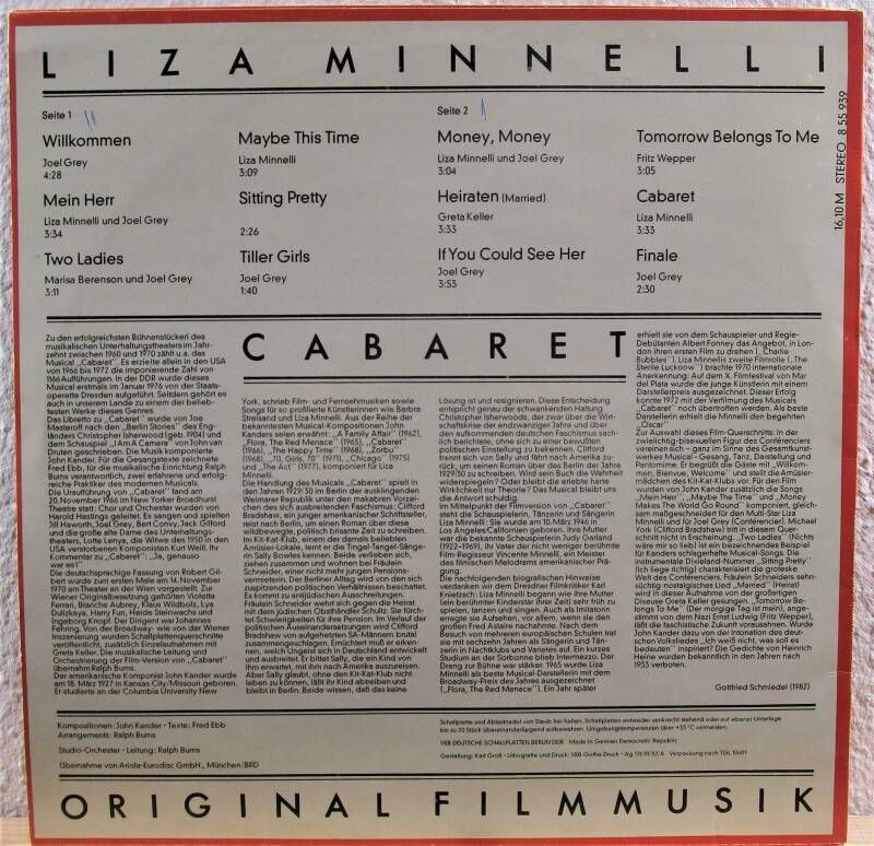 Liza Minnelli - Cabaret (Original-Filmmusik) Amiga 8 55 939 1982 Vinyl: VG++ Cover: VG+ Hersteller EU Verantwortliche Person Lieferzeit 3 - 6 Tage