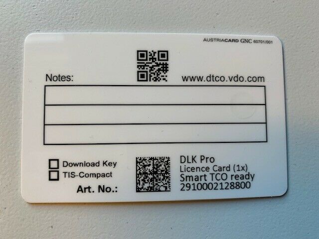 Lizenzkarte VDO Downloadkey DLK PRO für DTCO der 2. Generation