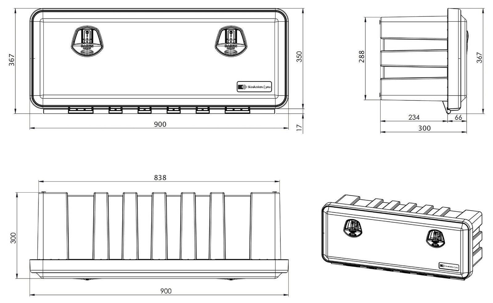 LKW Staukasten Just 900-R Werkzeugkasten 900x367x300mm, Staubox, Daken 190930H