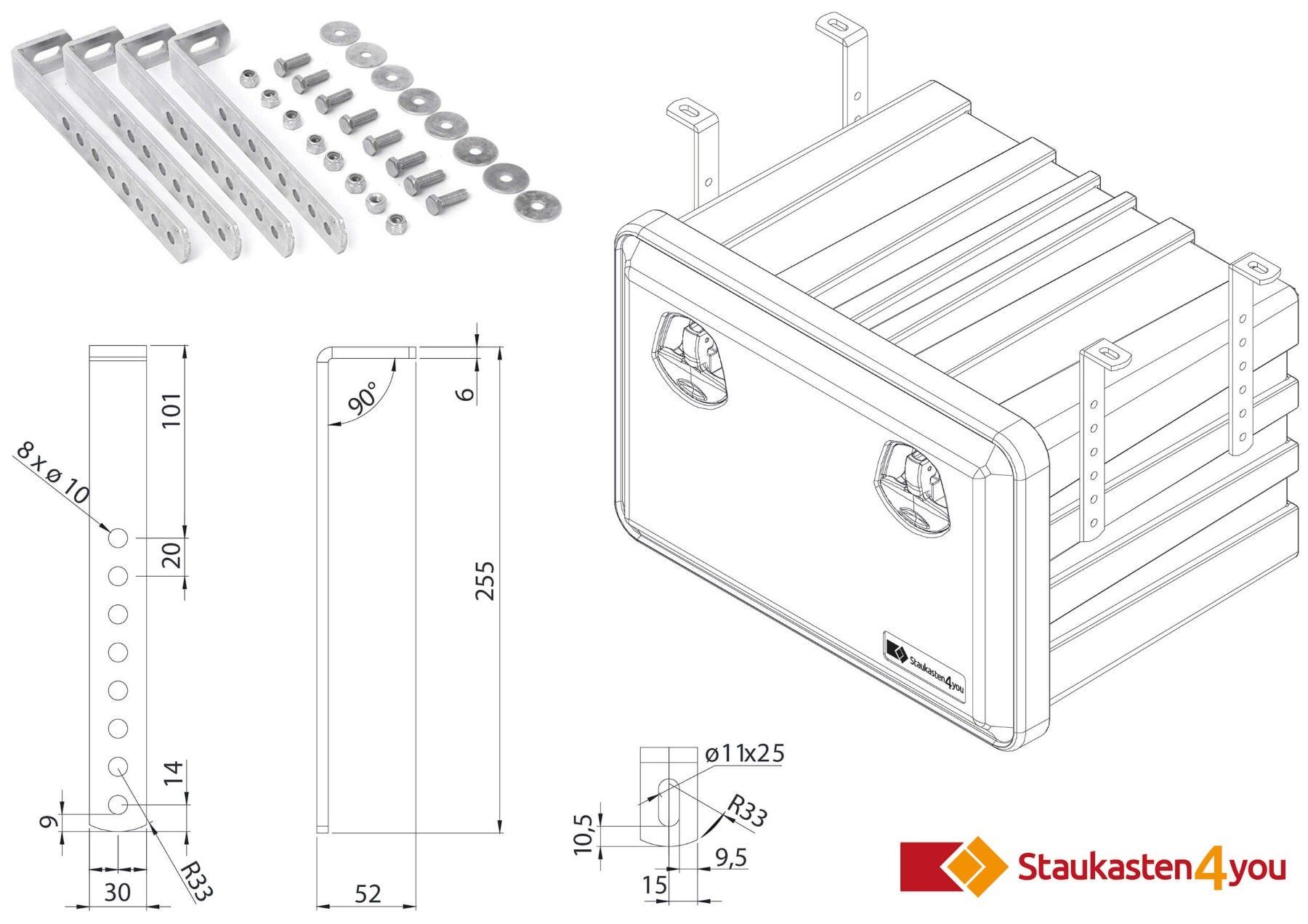 LKW Staukasten Staubox Kunststoff 350x350x350mm Copar Mini Unterflurkasten mit Halter