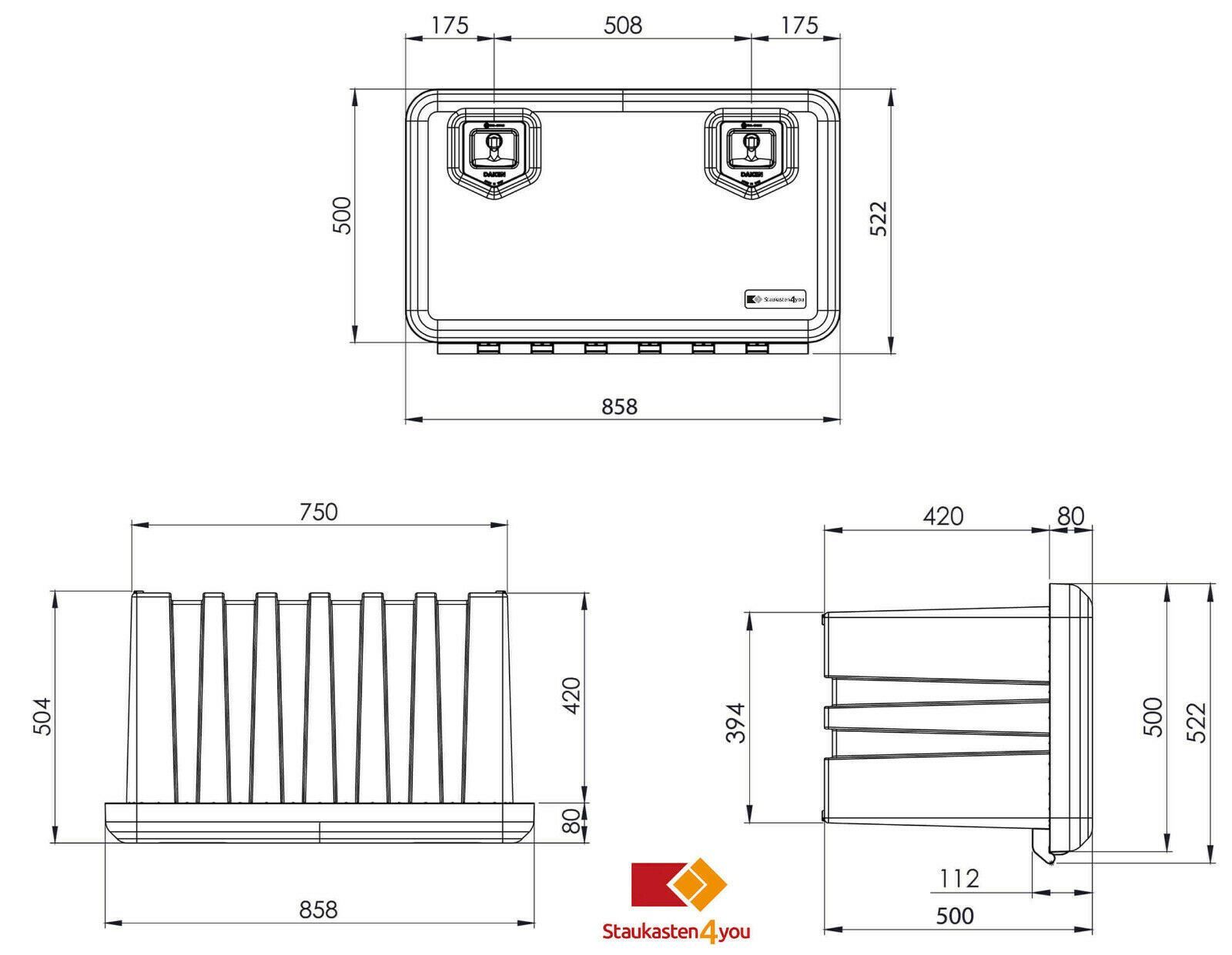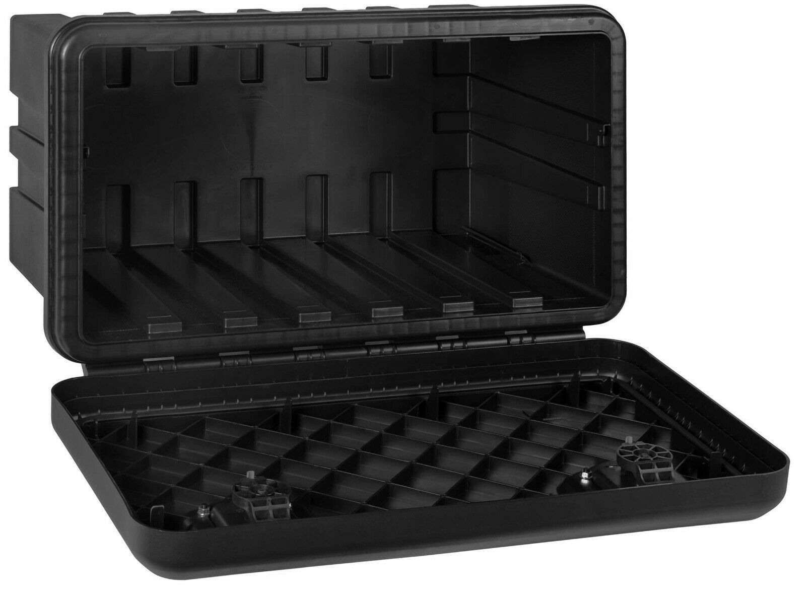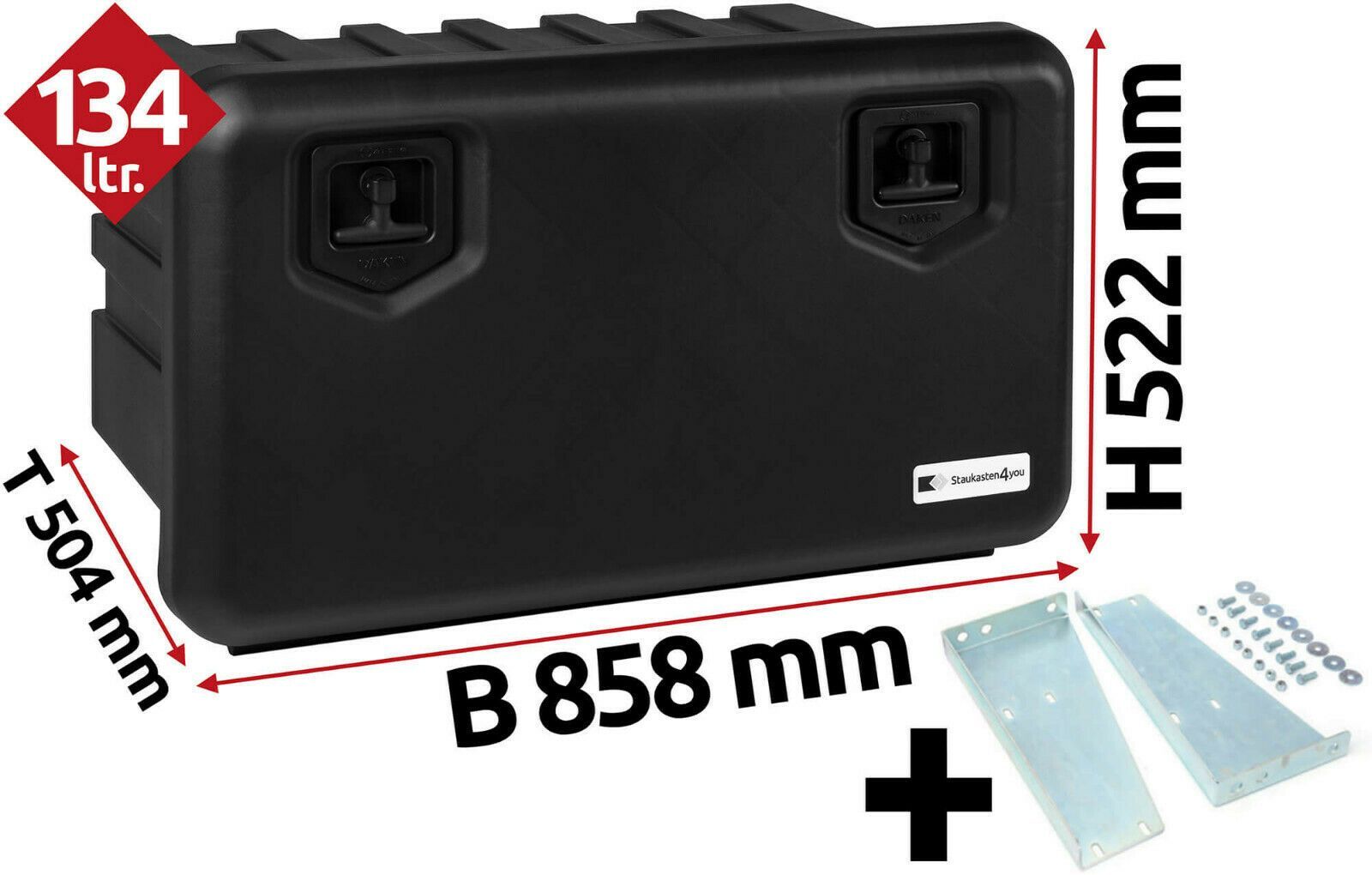 LKW Staukasten, Staubox, Werkzeugkasten aus Kunststoff - B 858 x H 522 x T 504mm 134 ltr. - inkl. Halterung zur Montage am Fahrzeugrahmen - Daken ARKA 210858H Der Werkzeugkasten besteht aus Polypropylen erster Wahl und wird im Spritzgussverfahren hergestellt. Werkzeugkasten mit geringem Eigengewicht