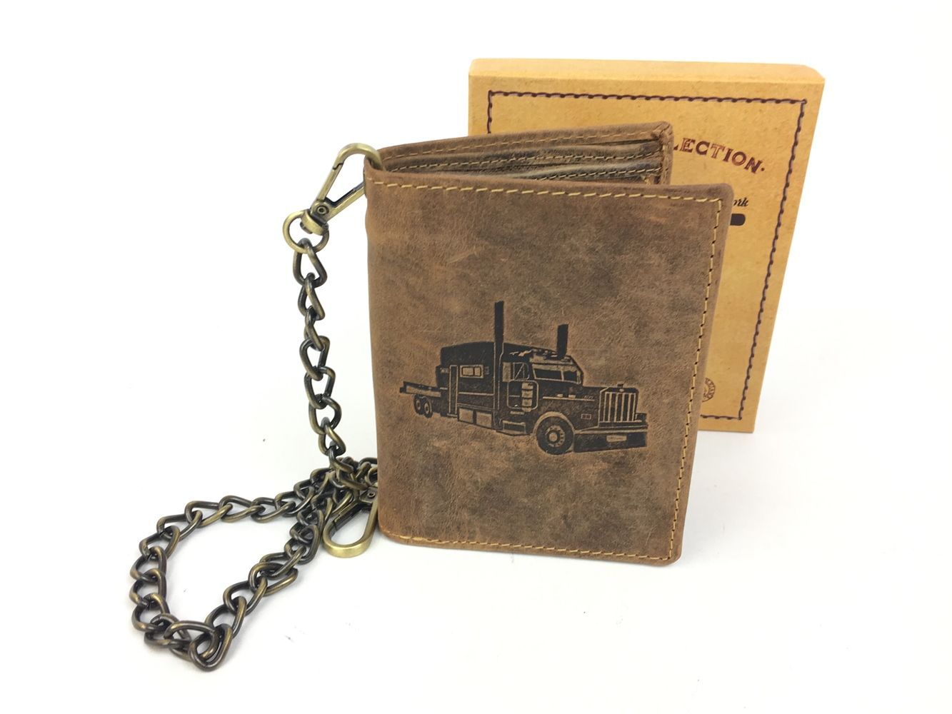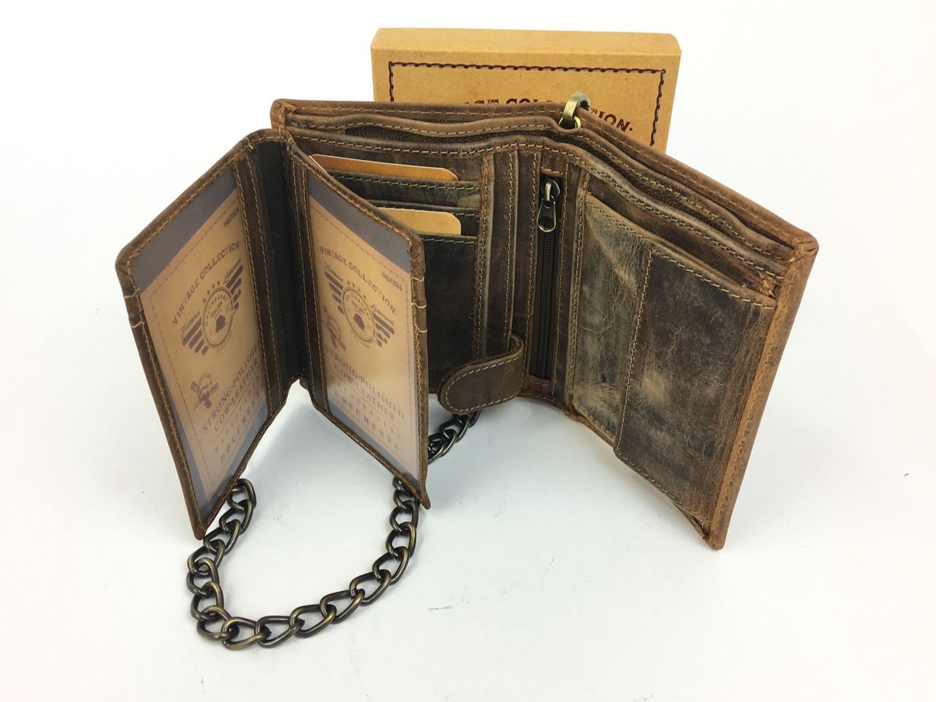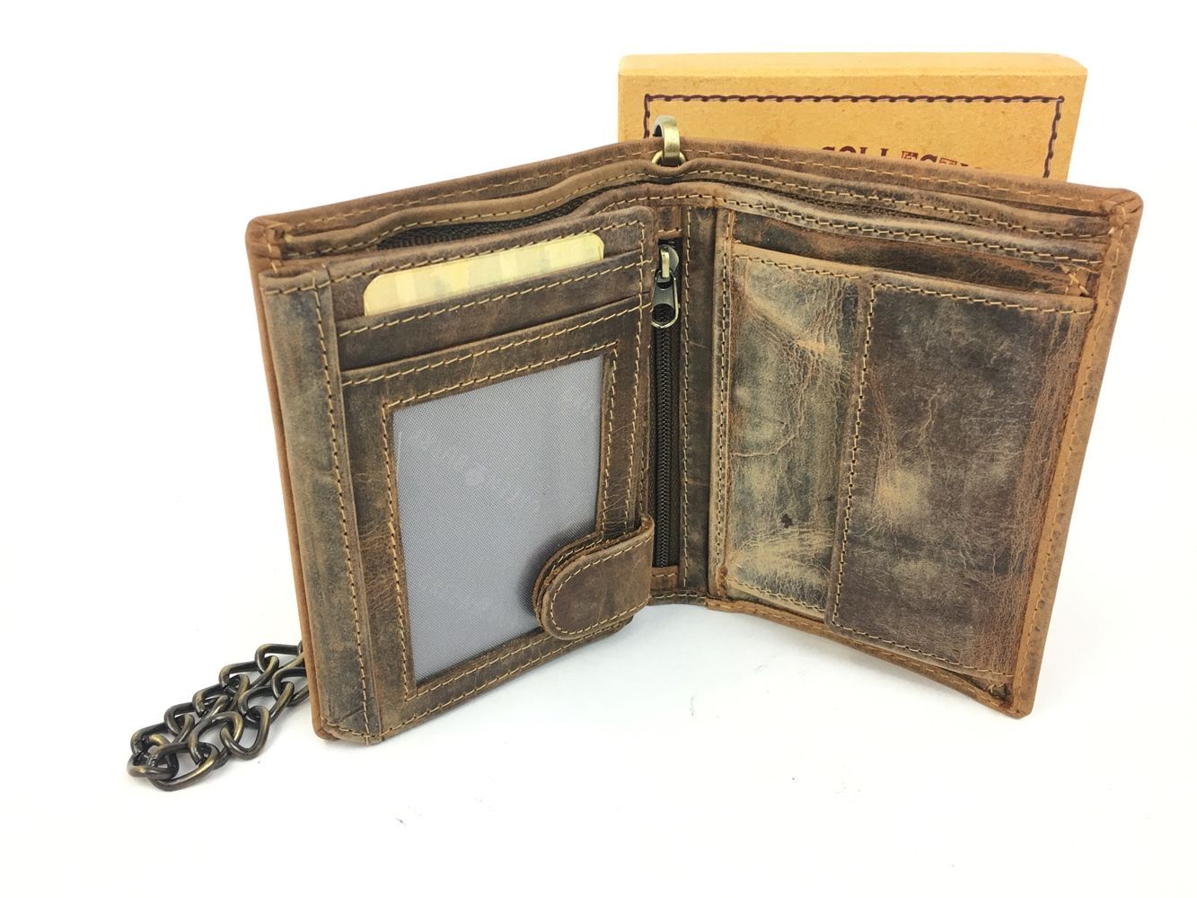 Greenburry LKW Trucker Geldbörse Fettleder mit Kette Antikleder Kettenbörse braun
