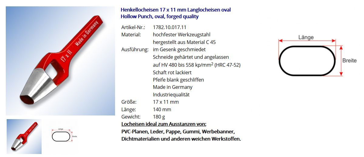 Locheisen oval 17 x 11 mm Henkellocheisen für PVC Planen Werbebanner Banner Neu