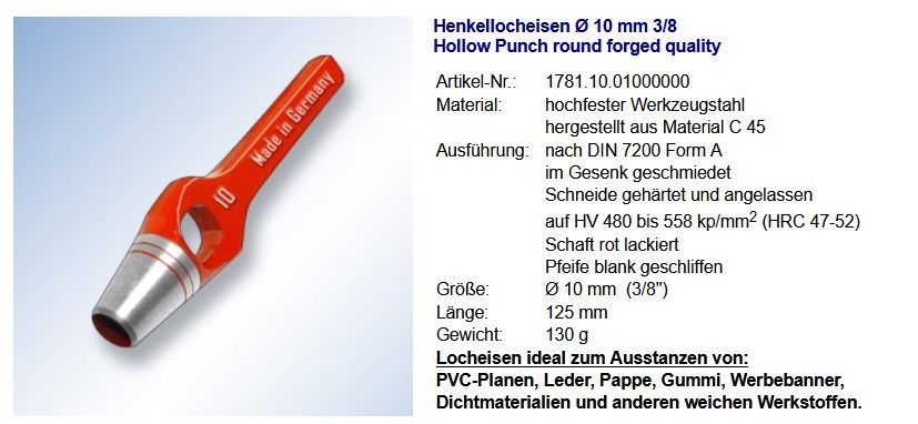 Locheisen rund Ø 10 mm Henkellocheisen Planen Werbebanner LKW Plane Banner