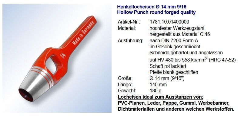 Locheisen rund Ø 14 mm Henkellocheisen Planen Werbebanner LKW Plane Banner (Gr. Ø 14)