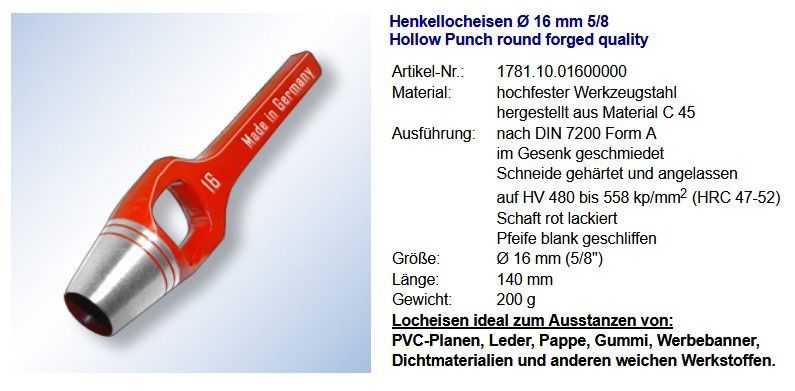 Locheisen rund Ø 16 mm Henkellocheisen Planen Werbebanner LKW Plane Banner (Gr. Ø 16)